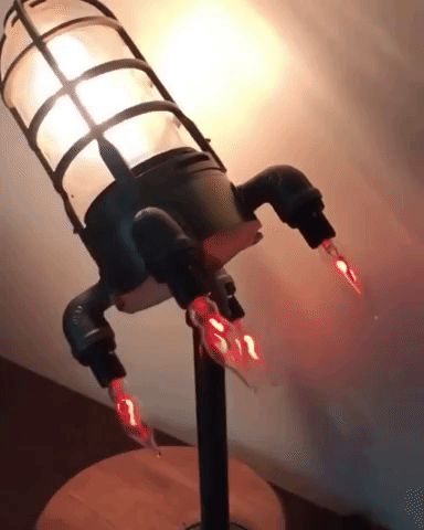 bulbs emulate the lifelike fire of a launching rocket. This piece effortlessly brings a touch of retro-industrial flair to any space.