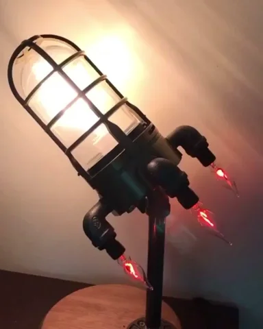 bulbs emulate the lifelike fire of a launching rocket. This piece effortlessly brings a touch of retro-industrial flair to any space.