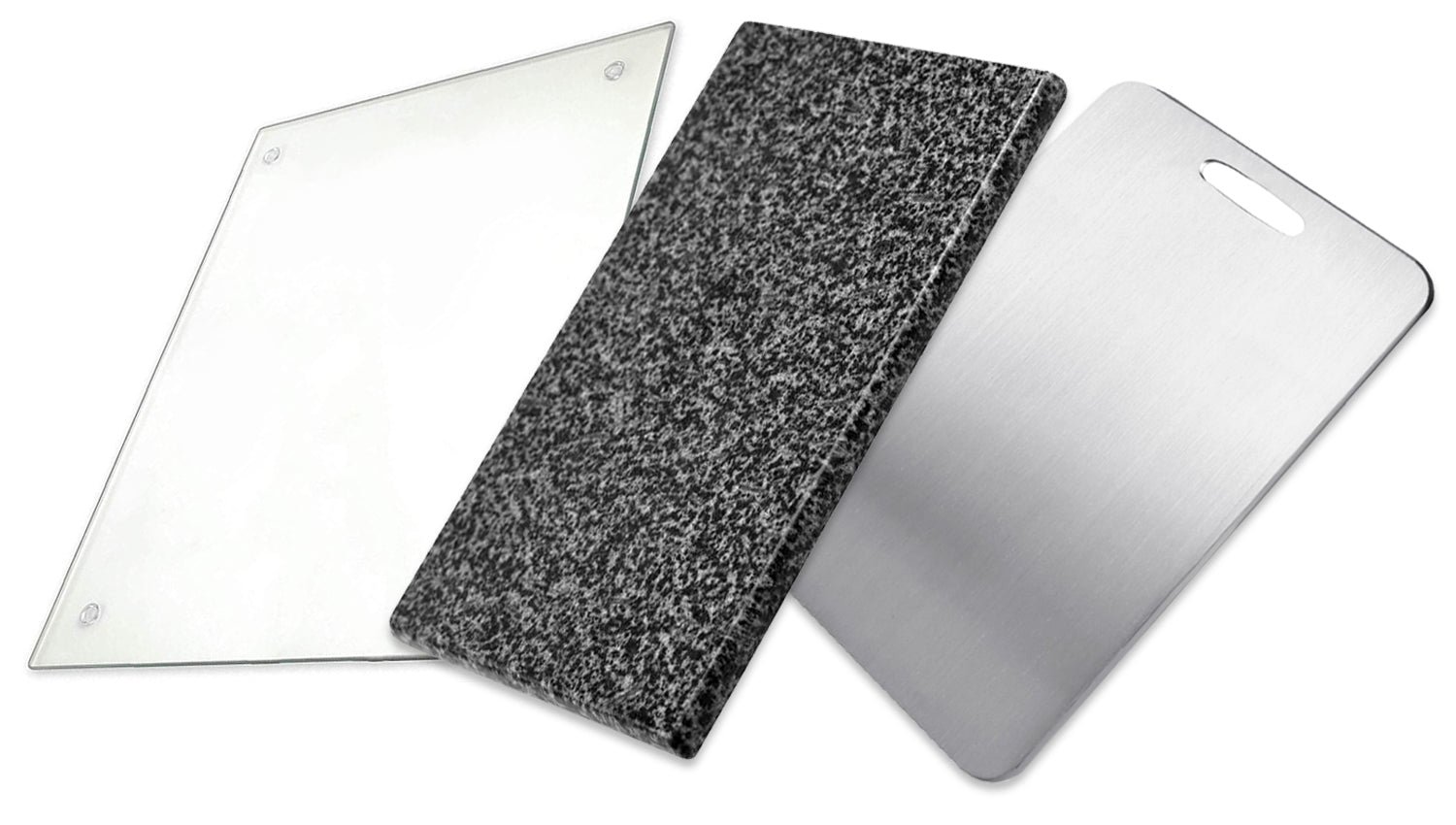 - Titanium:Â Although softer than stainless steel, titanium boards are more costly and may not offer the same durability and scratch resistance as our stainless steel boards.