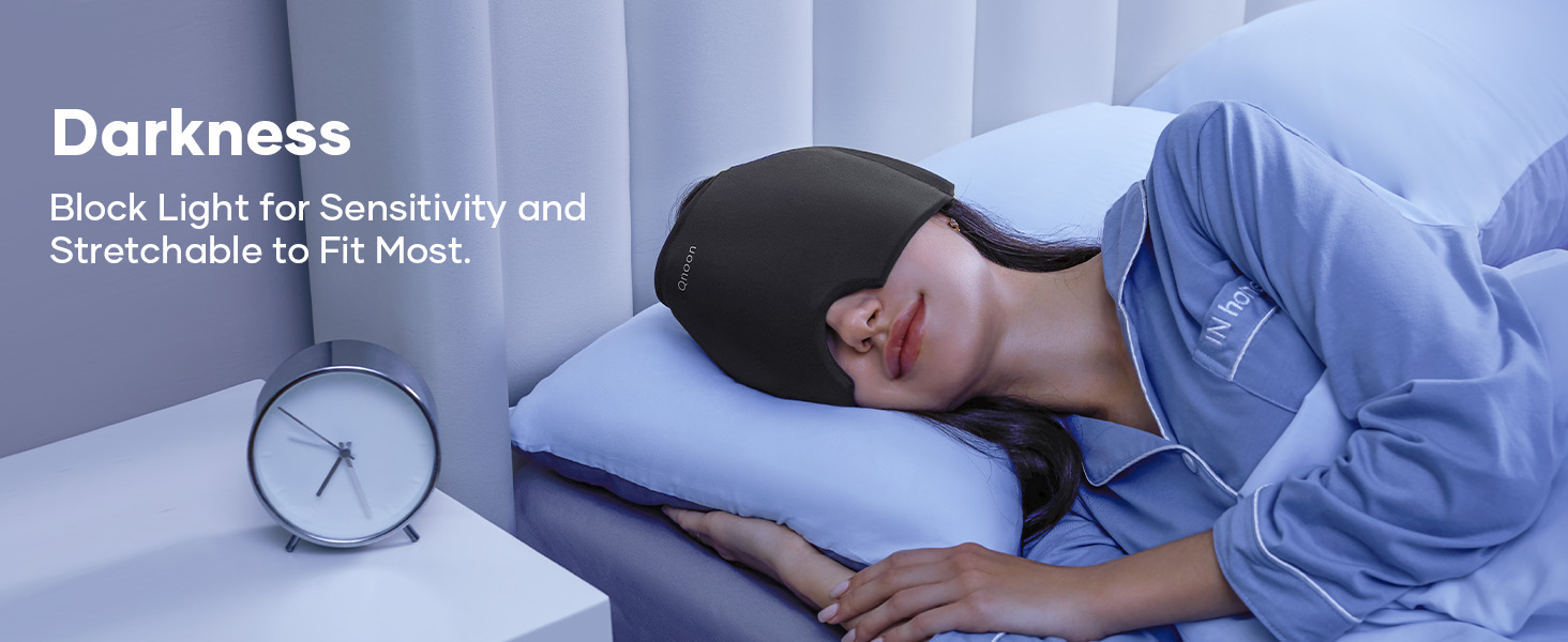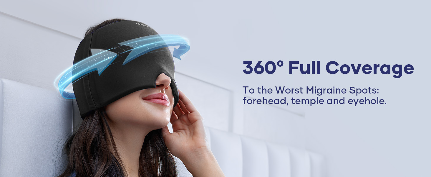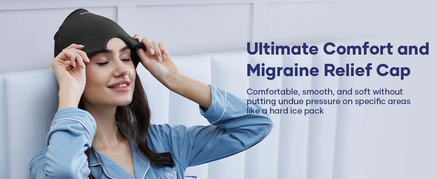 - Natural Relief Cap for Instant Headache Relief: Qnoon Migraine Relief Cap offers 360° gel coverage, expanding cold compress area by 25%. Its stretchable design fits most heads, targeting the forehead, temples, and eyes with moderate, comfortable pressure