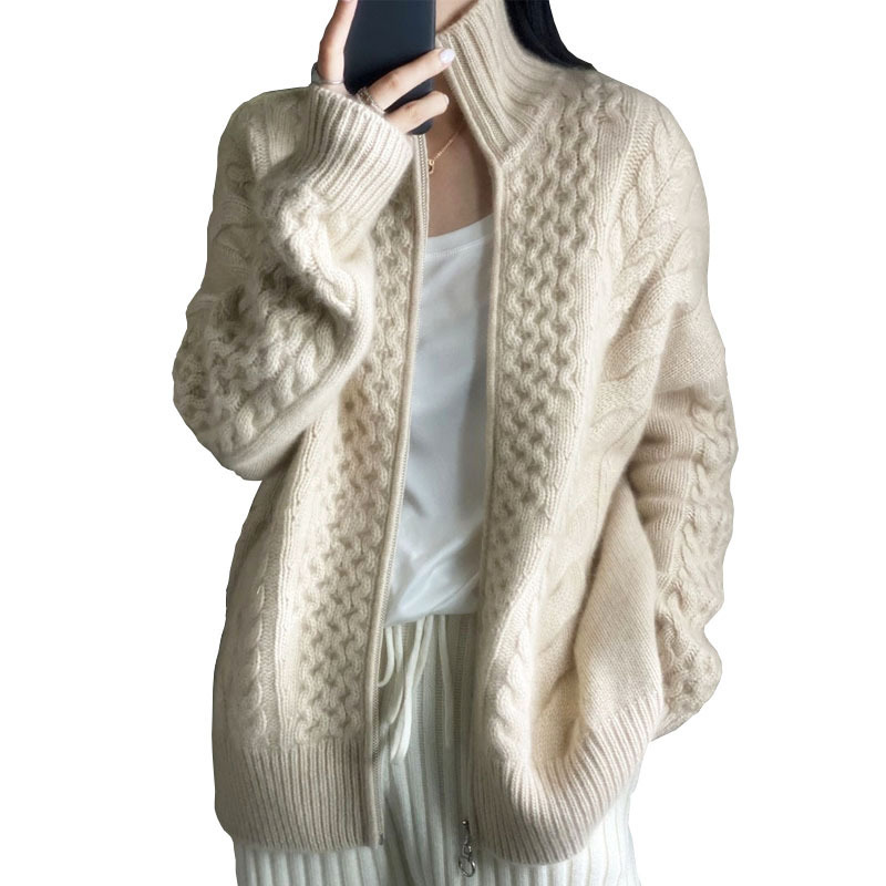 Thick Cashmere Women High Neck Zipper Sweater Cardigan