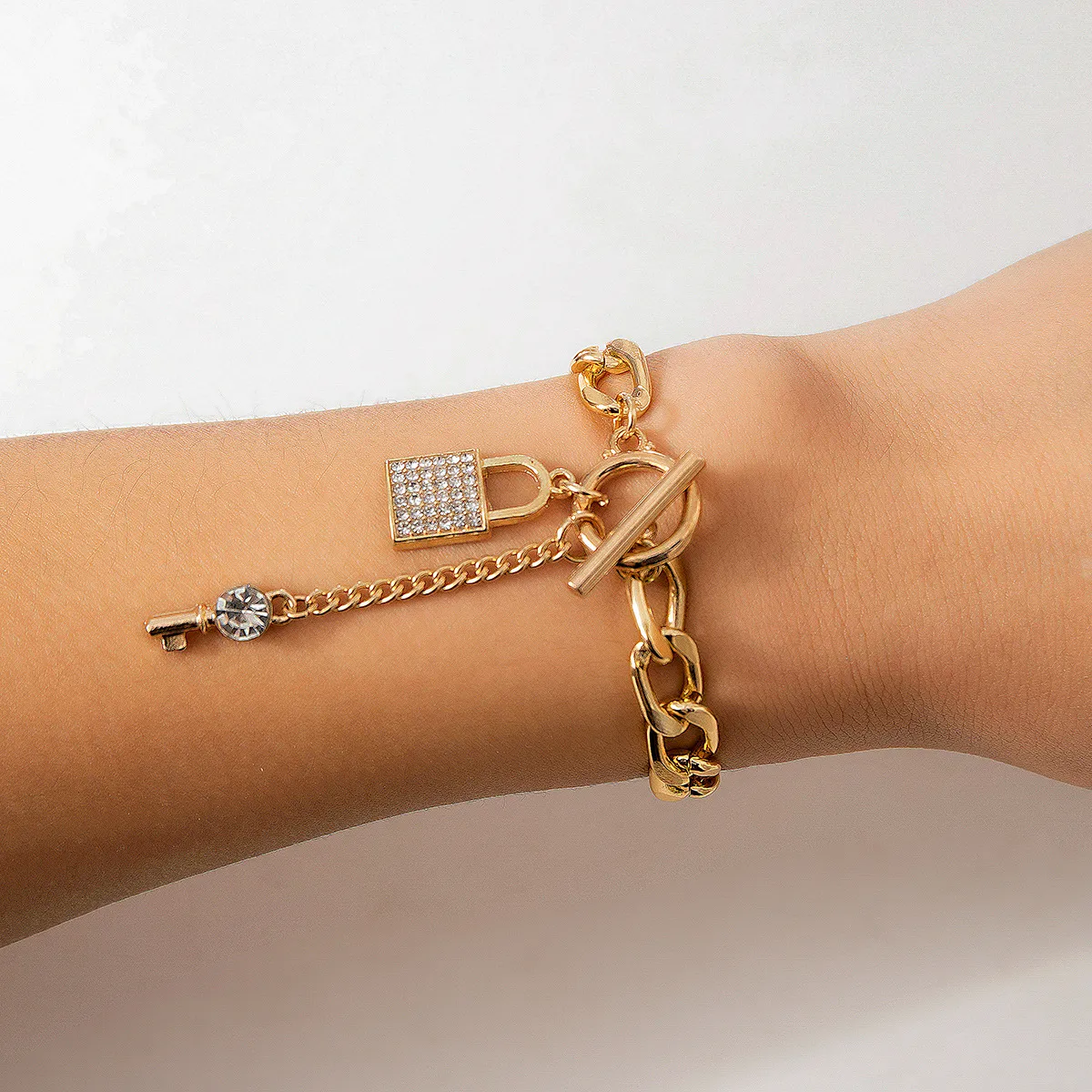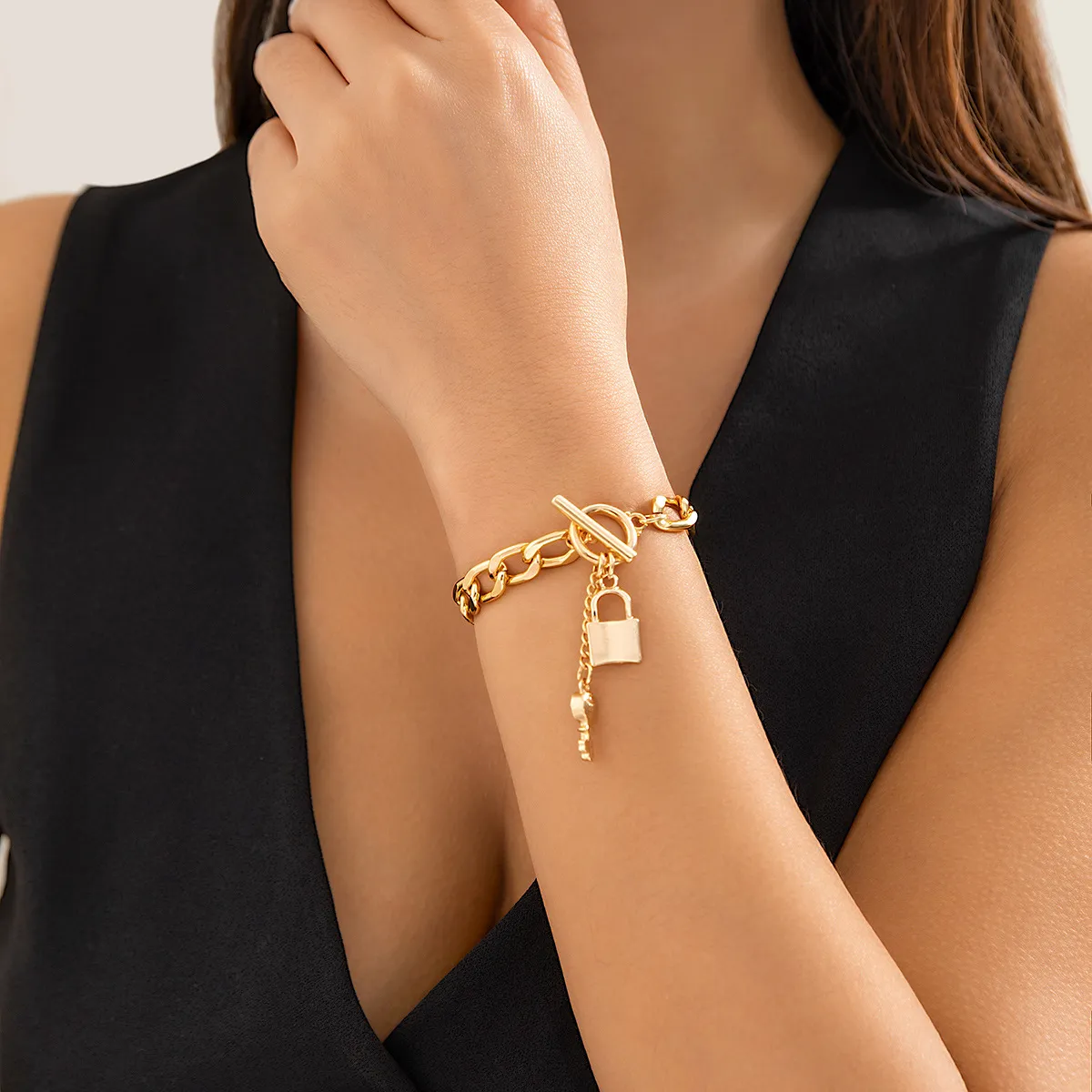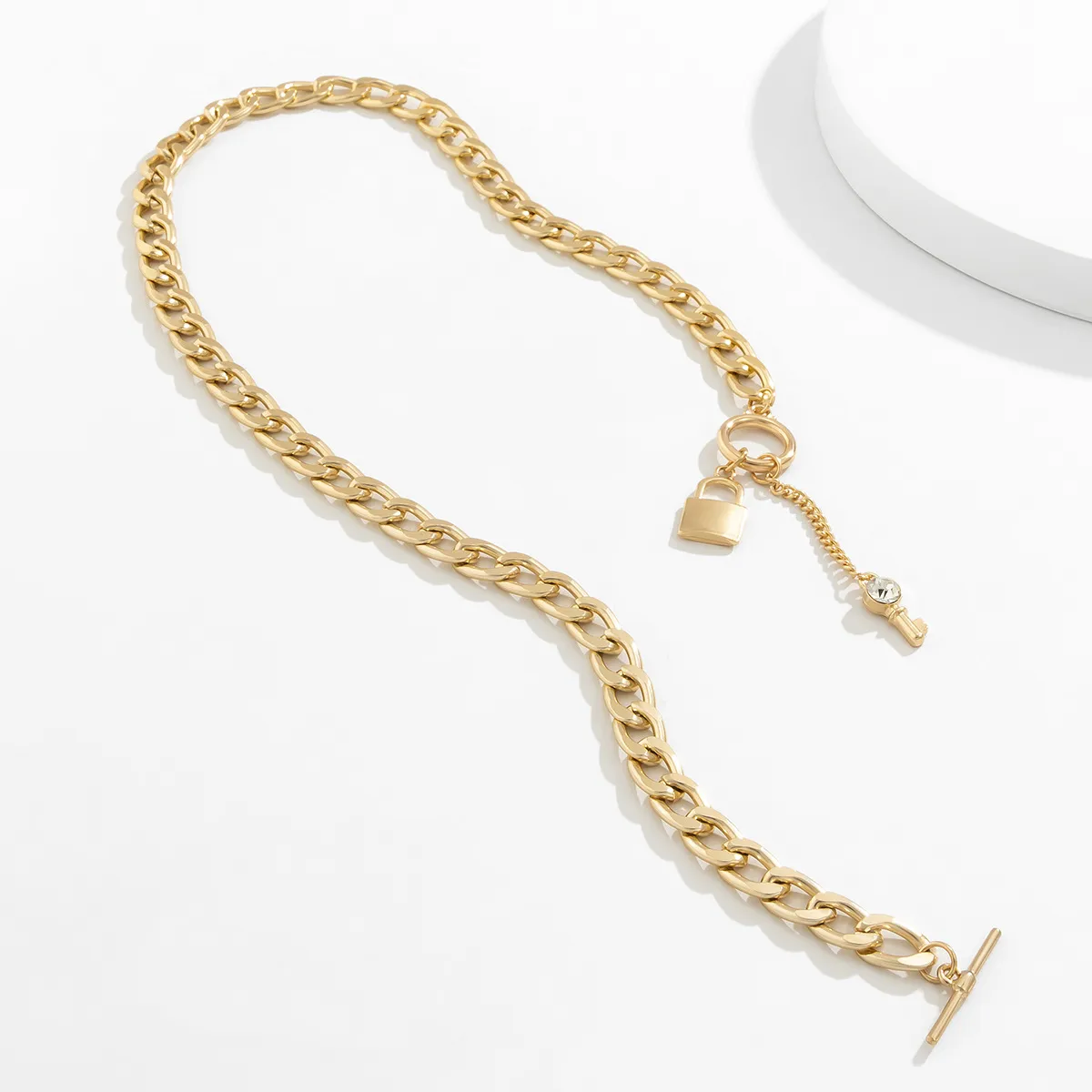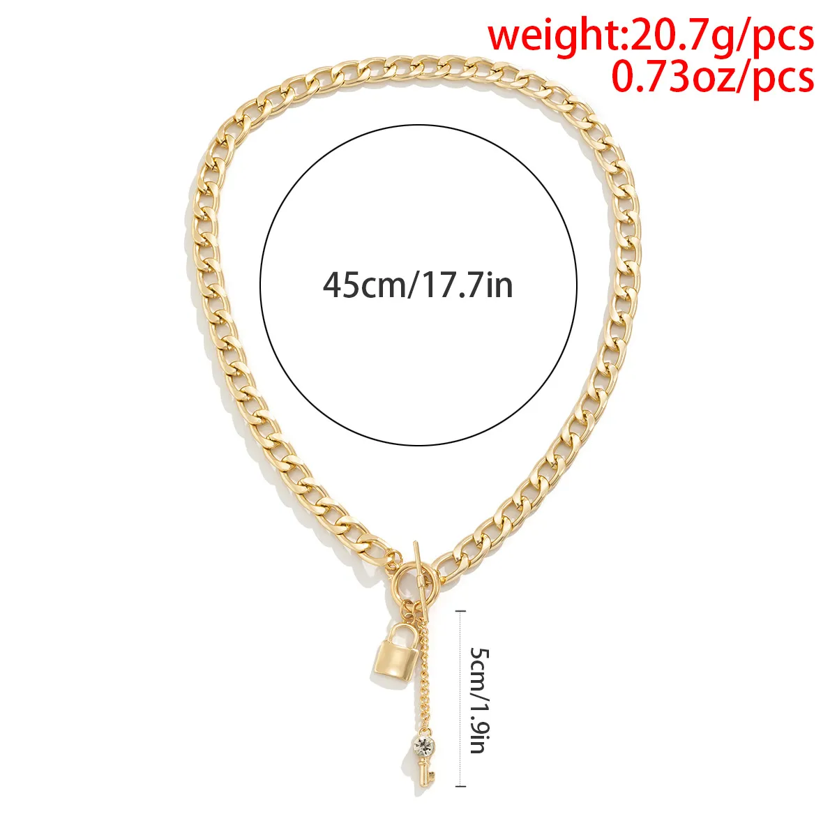 This necklace features a thick chain that exudes confidence and style. The shiny lock and key pendants add a touch of charm and elegance, making this piece perfect for women who love to stay ahead of the fashion curve. It's both bold and versatile, offering a trendy way to accessorize any outfit.