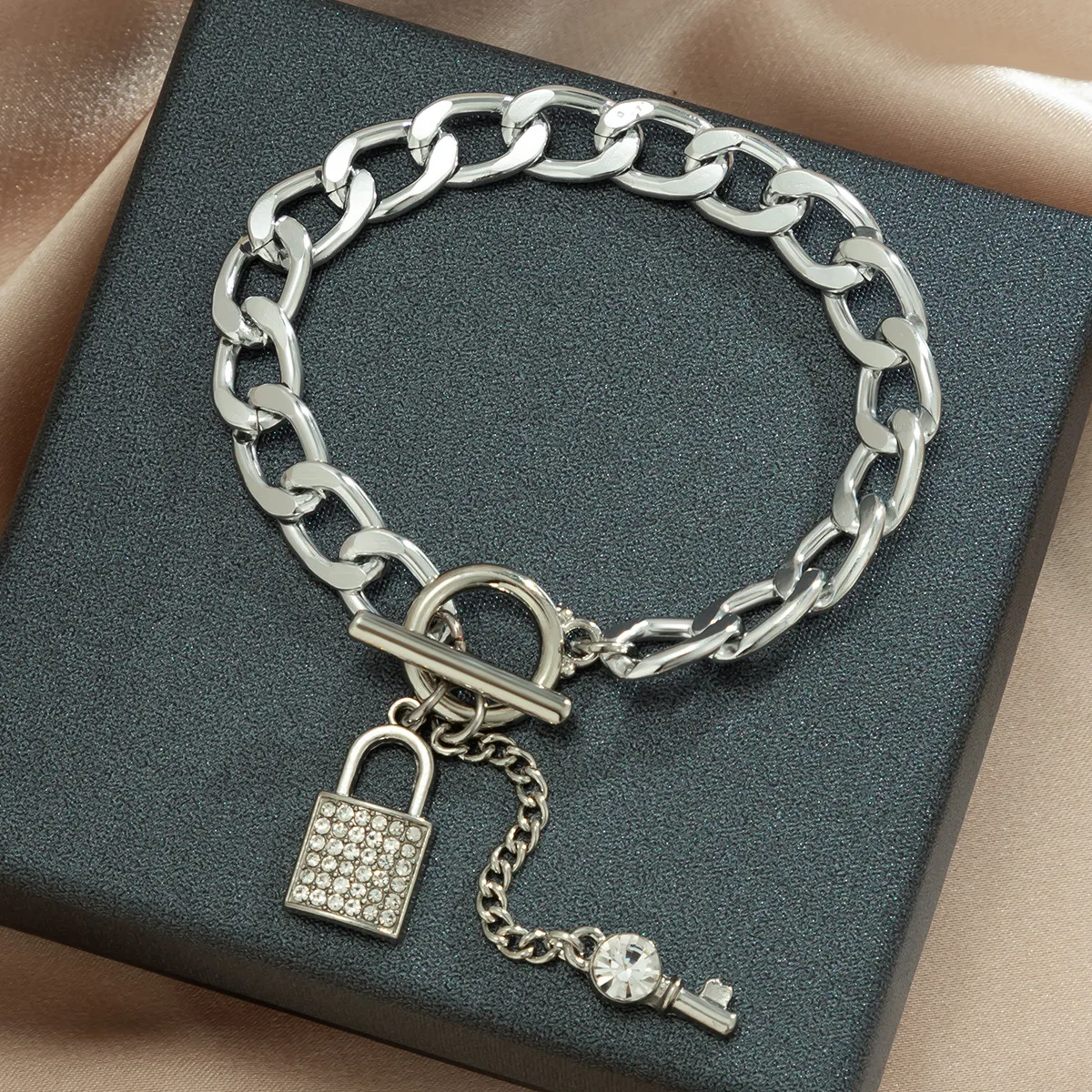 - Trendy, Bold Design: A thick chain with a stylish lock and key pendant for a modern look.