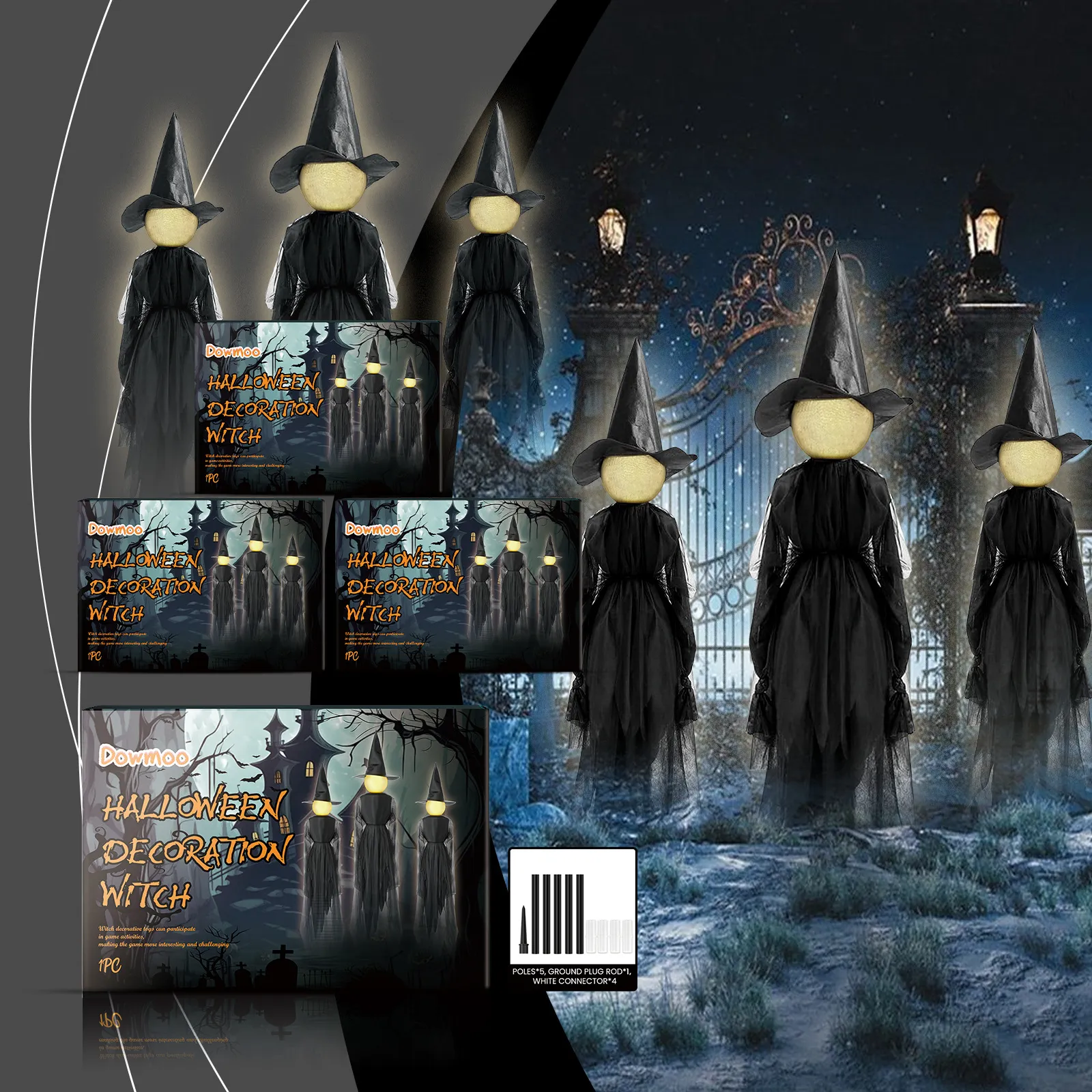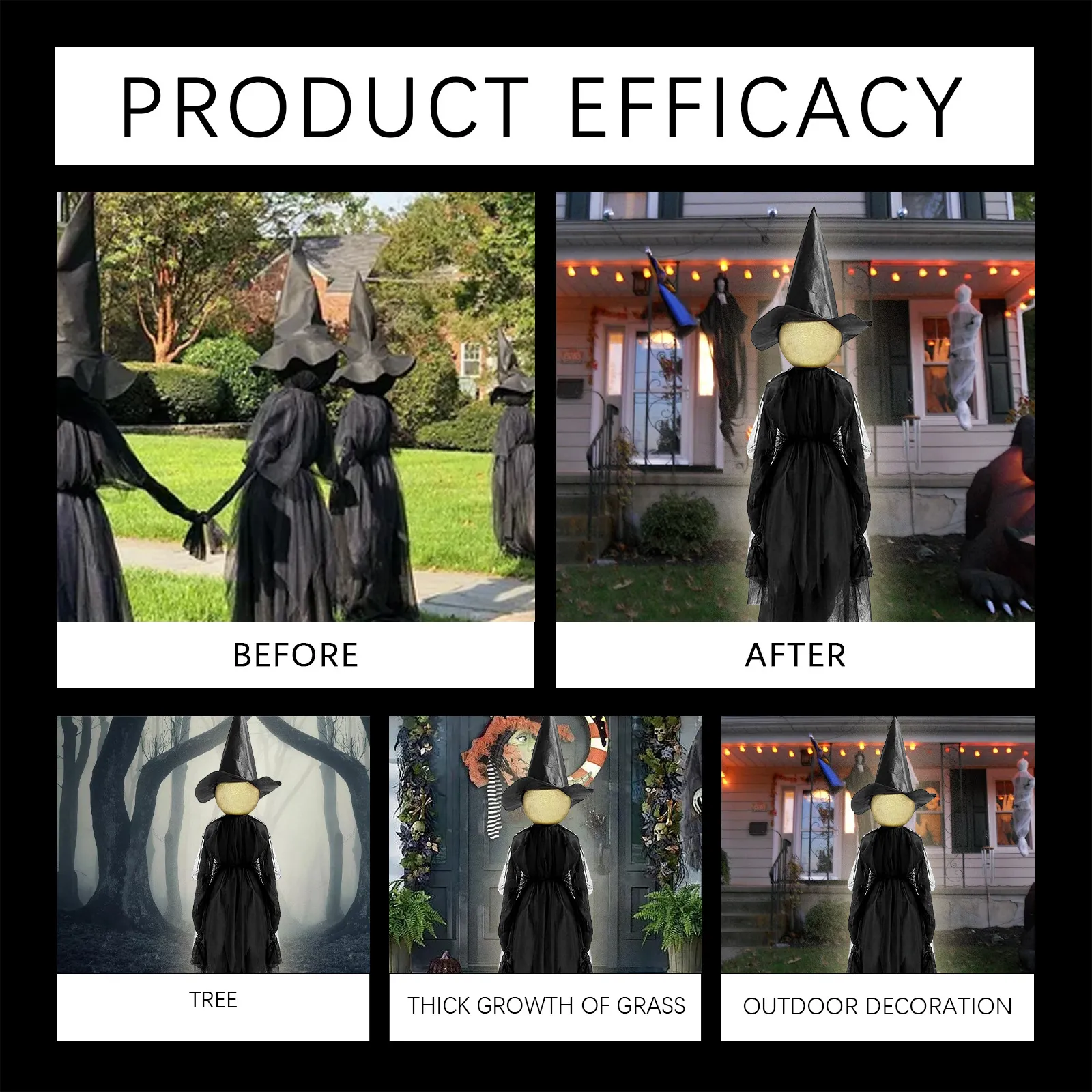 Whether used as standalone decor pieces or as part of a larger Halloween display, these witch costumes bring the essence of the classic witch to life, making them perfect for Halloween parties, trick-or-treat setups, or simply adding spooky charm to your home.