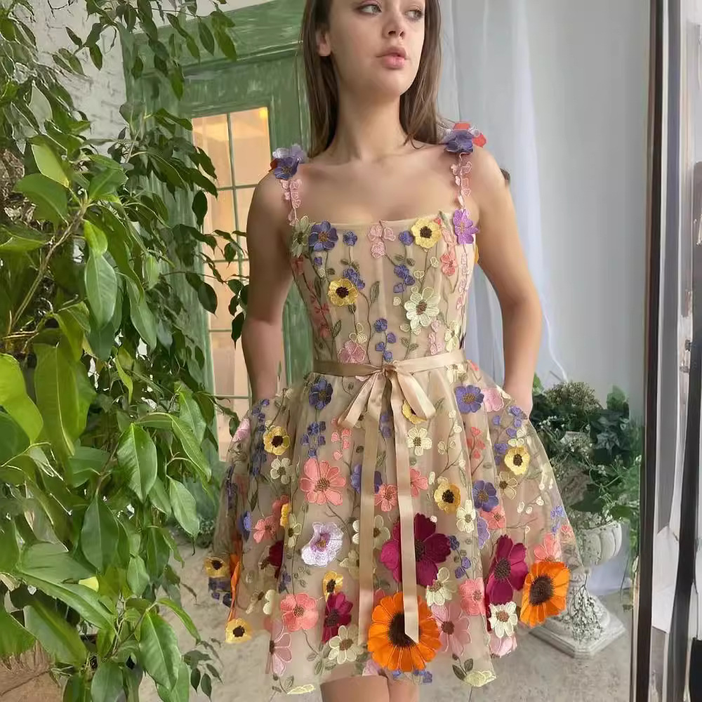 Three-dimensional Flower Embroidery Dress For Women