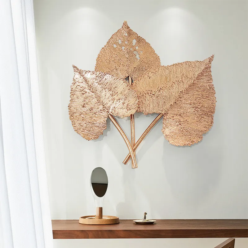 Three-dimensional Golden Plant Iron Art Wall Hangings Modern Light Luxury Wall Decoration