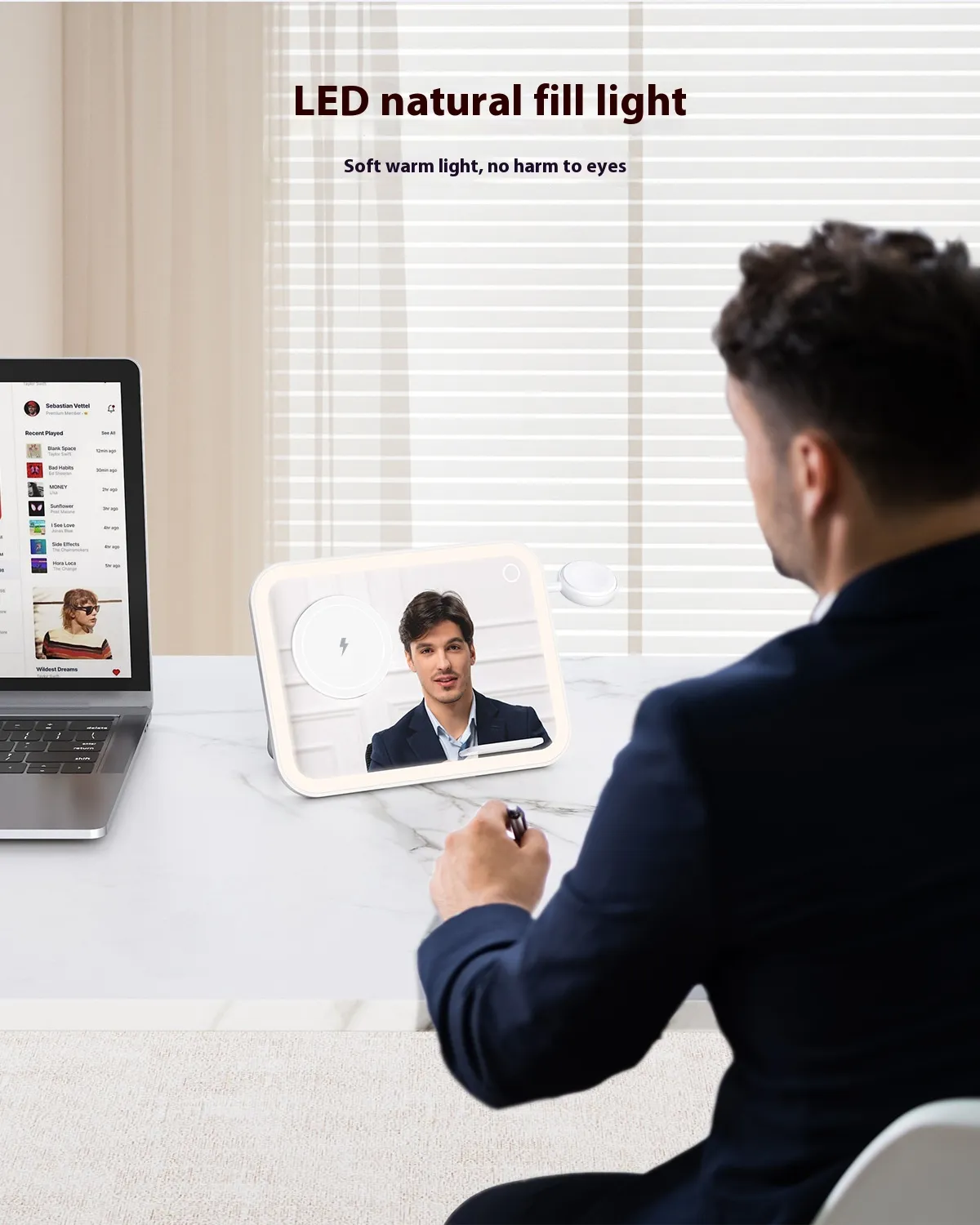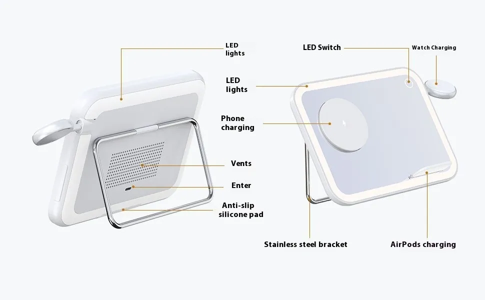 All-in-One Functionality: Combines wireless charging, LED makeup mirror, RGB