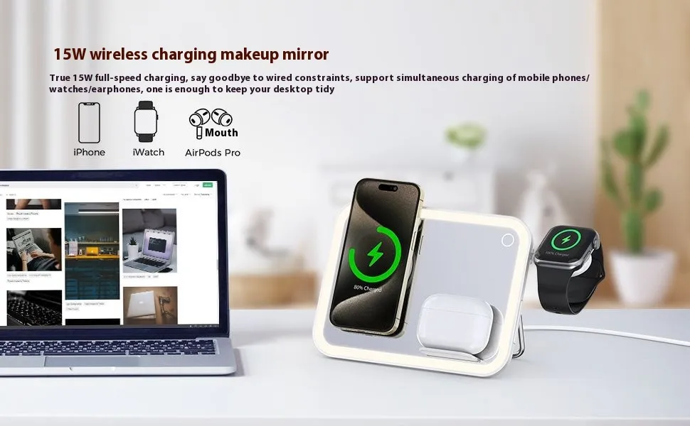 Why Choose the Three-in-1 Wireless Charger LED Makeup Mirror RGB Small Night Light Four-in-One Desk Lamp Charging Stainless Steel Holder?
