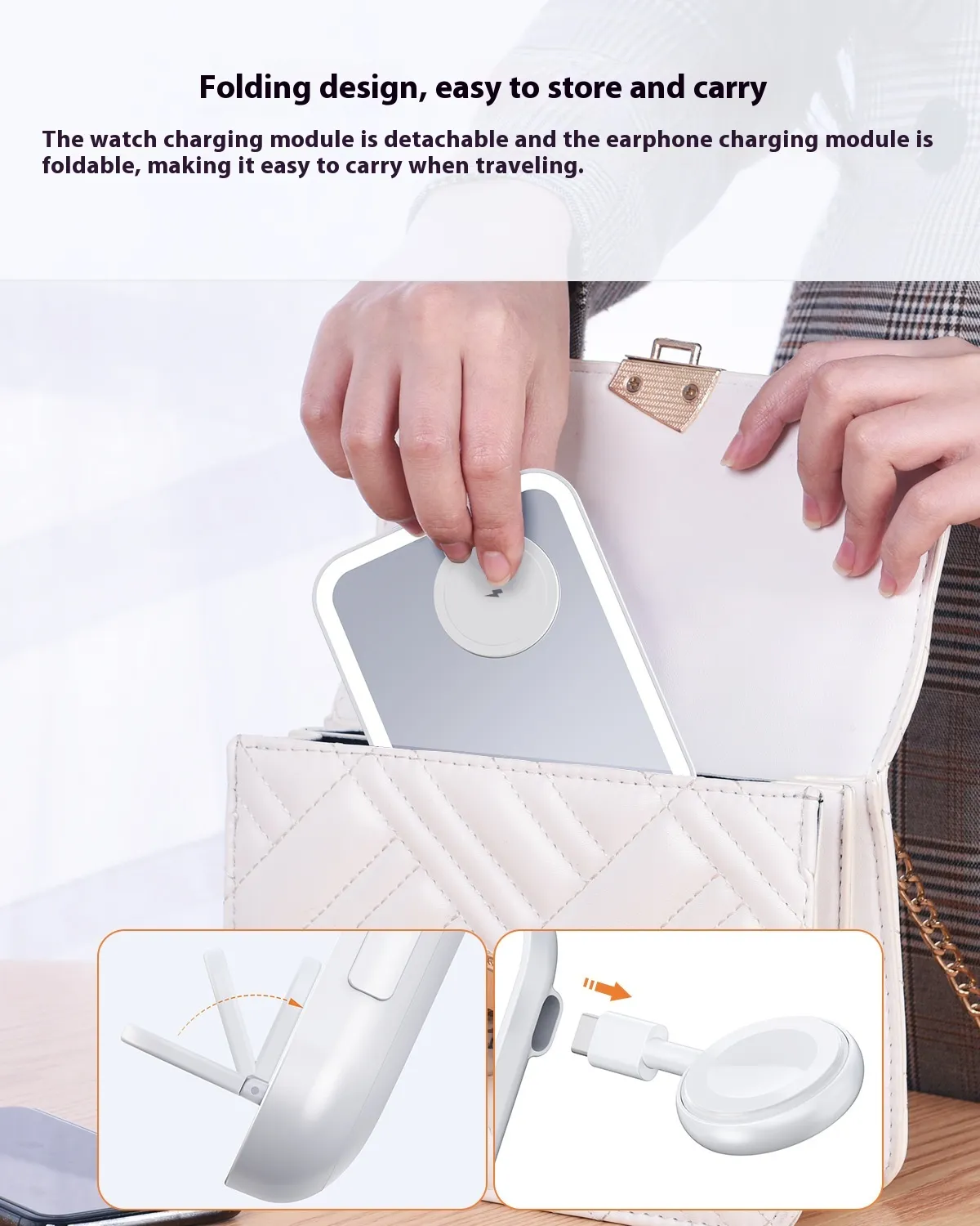With wireless charging capabilities, you can easily power your smartphone, tablet, or other wireless charging-enabled devices without needing extra cables. The stainless steel holder ensures a durable and stylish design, blending seamlessly into your desk or vanity area.