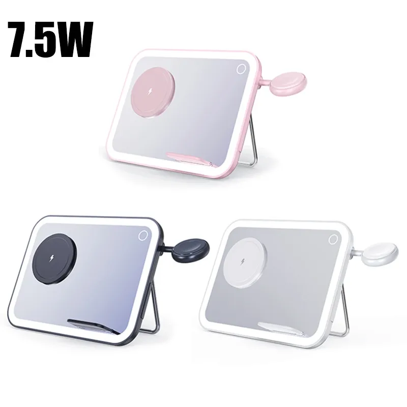 Three-in-1 Wireless Charger LED Makeup Mirror RGB Small Night Light Four-in-One Desk Lamp Charging Stainless Steel Holder