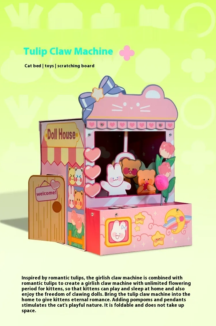 Three-in-One Functionality: Combines a tulip clip, cat nest, and crane machine in one unique design, offering comfort,