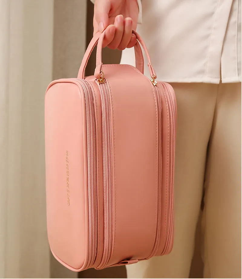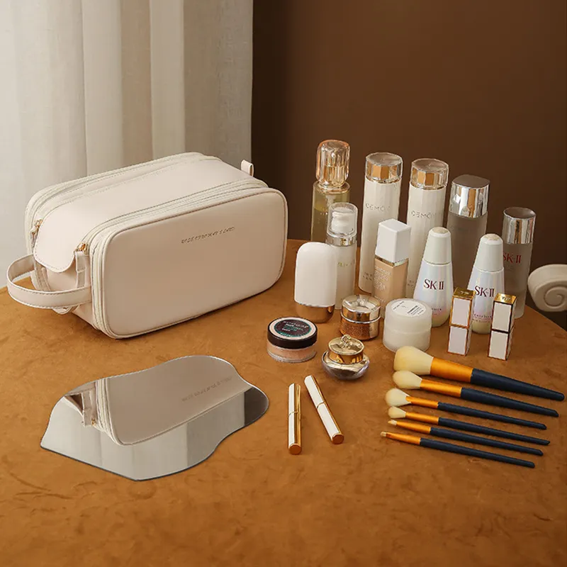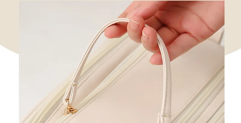 Three-layer Double Zipper U-shaped Design Cosmetic Bag Fashion High Capacity Make Up Bags Portable Pu Leather Storage Bag For Skin Care Products