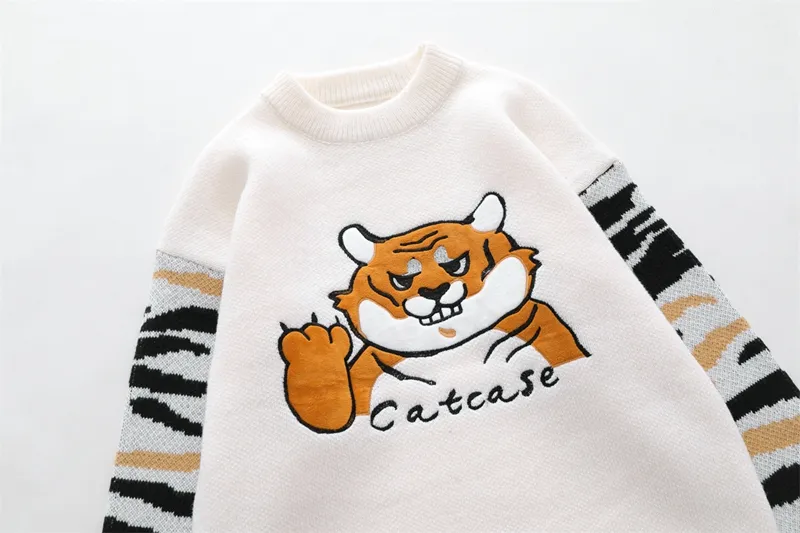 The standout feature is the detailed tiger motif or pattern — either knitted, printed, or embroidered — which adds fierce personality and unique flair to your wardrobe.