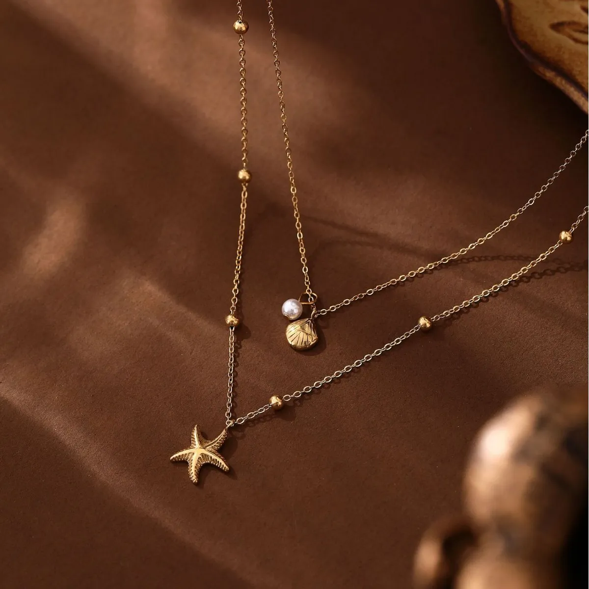 Titanium Steel High Color Retention Double-Layer Starfish Shell Necklace – A Timeless Beach-Inspired Treasure