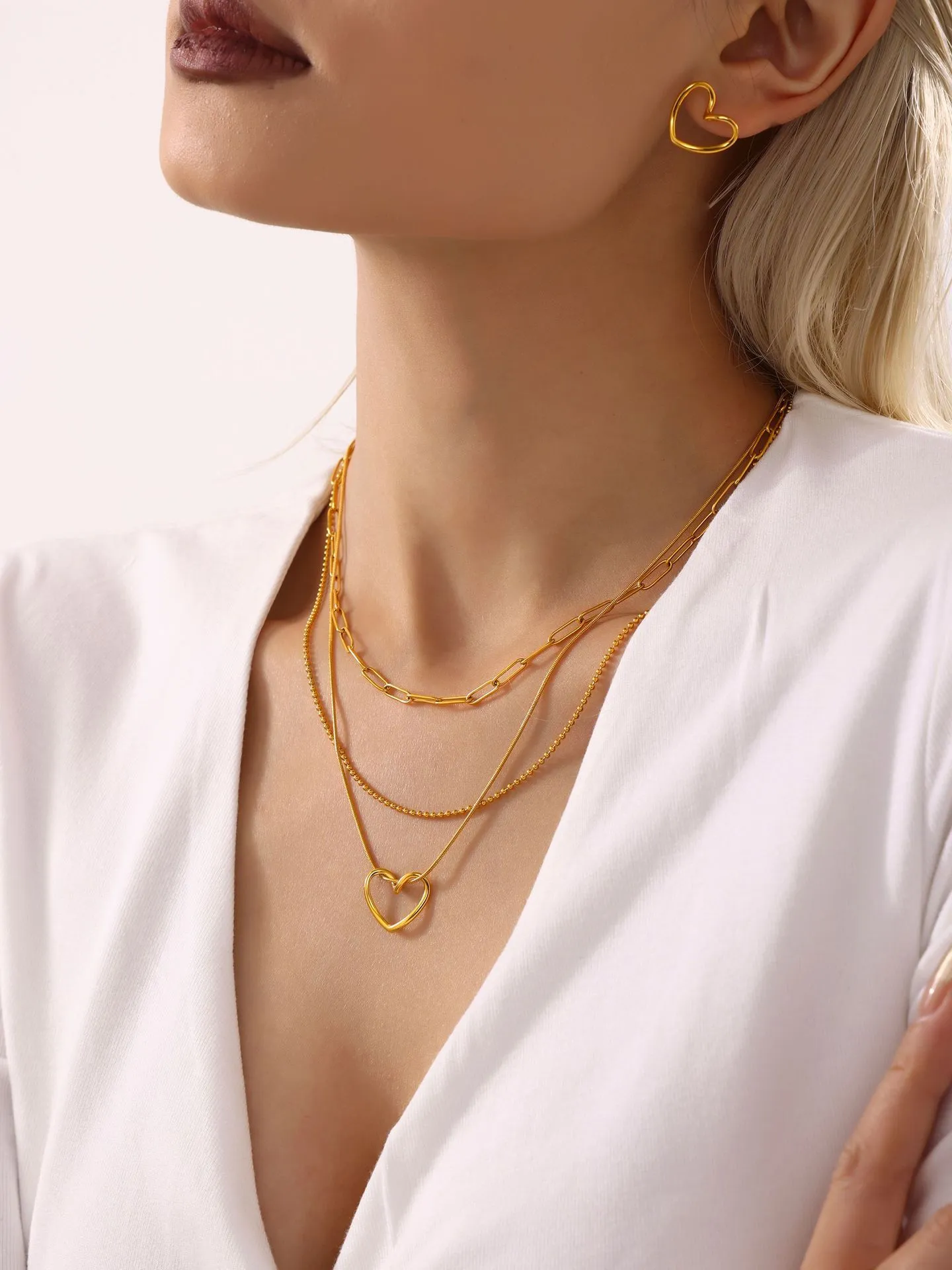 Titanium Steel PVD Electroplating 18K Real Gold Hollow Heart Ear Studs