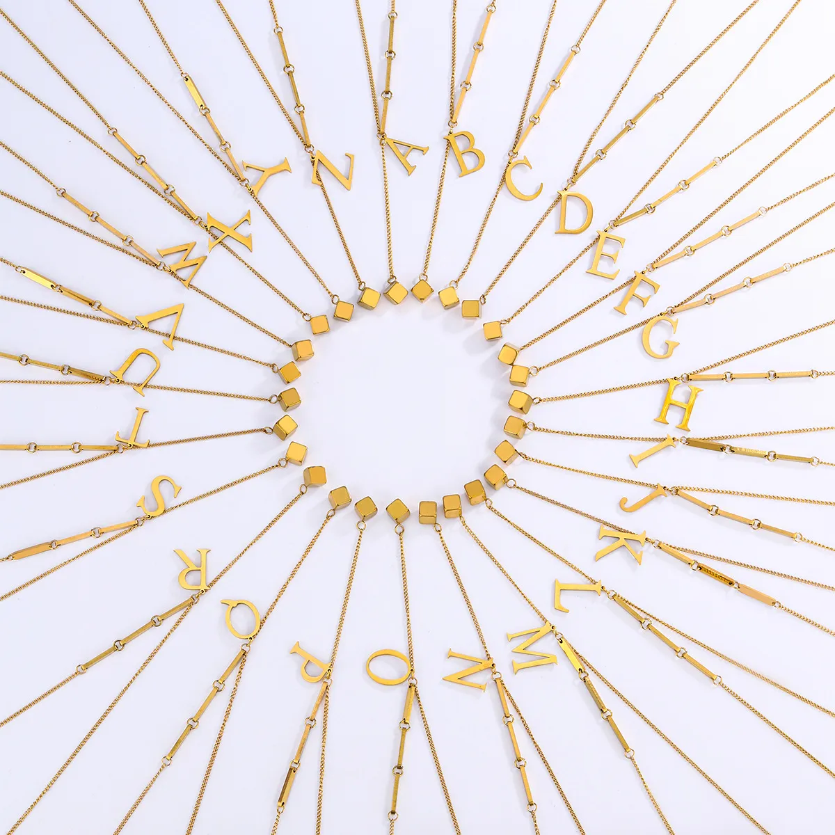 Titanium Steel Tassel 26 Letters Square Pendant Necklace