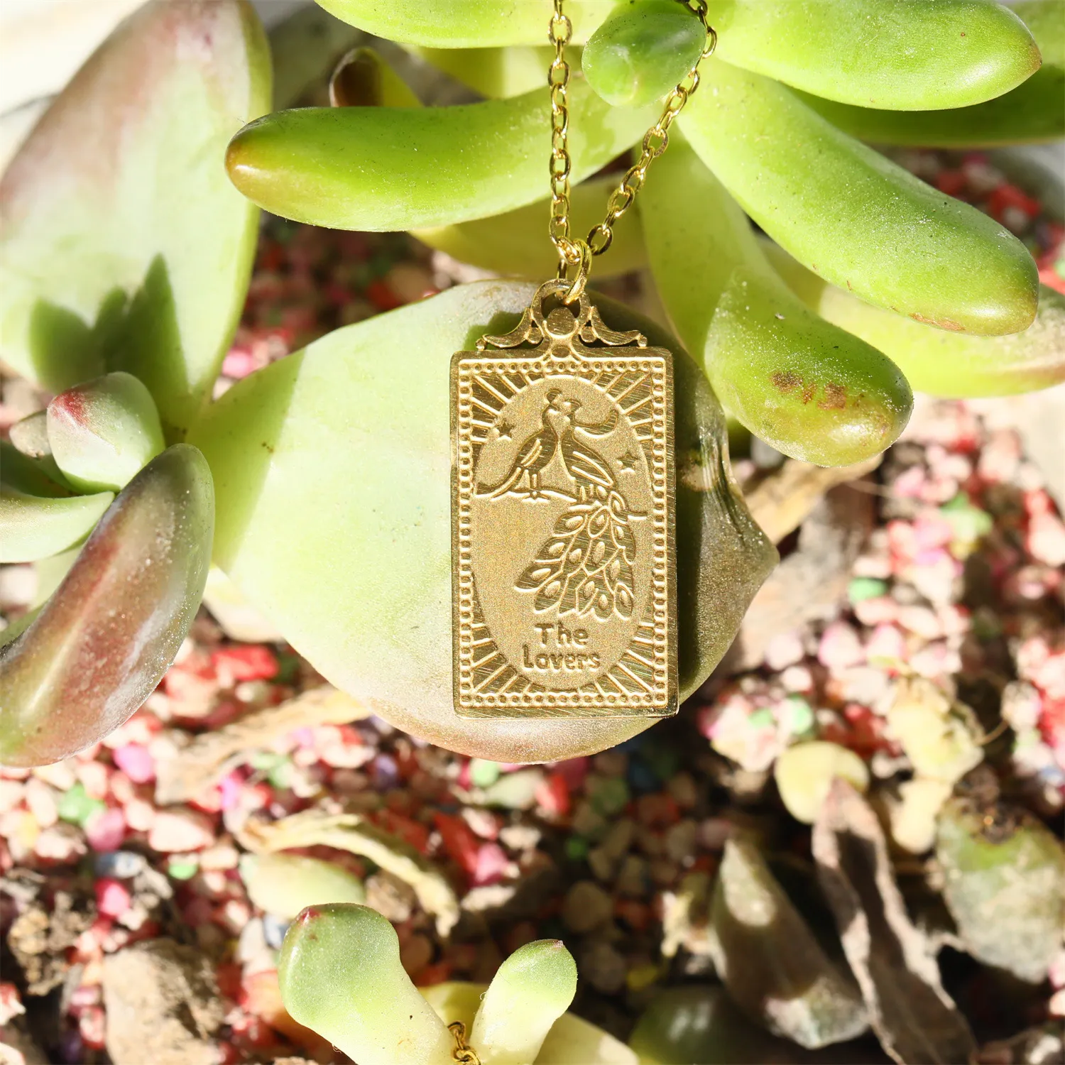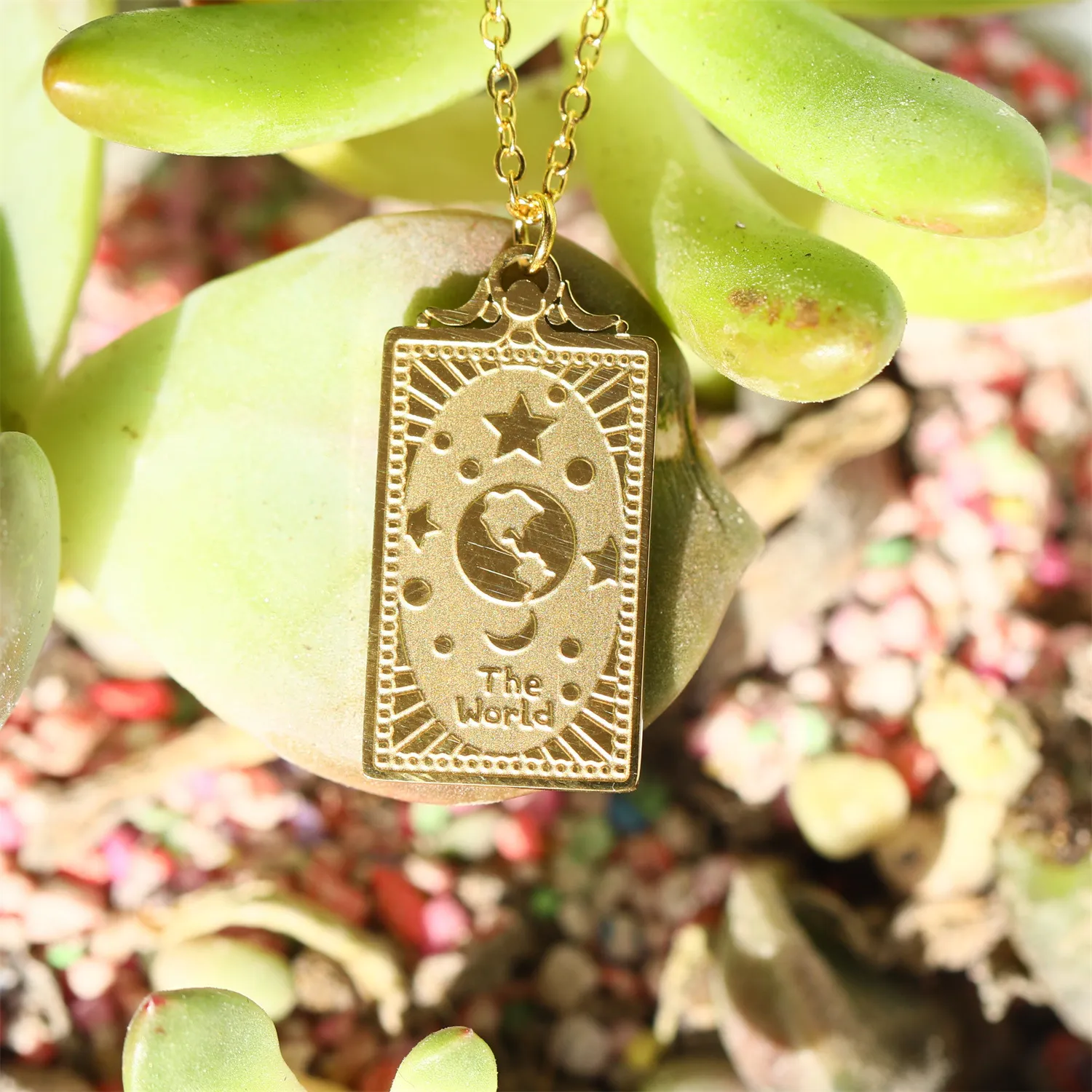 The tarot card pendant is the focal point of the necklace, drawing inspiration from tarot symbolism. Tarot cards are rich in spiritual meanings and are often used for divination, representing personal growth, intuition, and inner wisdom. The pendant’s detailed design offers both visual appeal and spiritual significance, making this necklace a perfect conversation piece and a meaningful accessory.