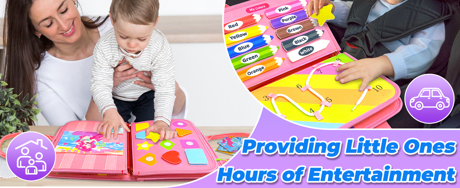 - Portable Travel Toy: Lightweight and portable, our busy board is an excellent travel toy for toddlers to carry it around, perfect for car & plane travel activities. Enjoy some quiet time for yourself on a road trip & airplane travel!