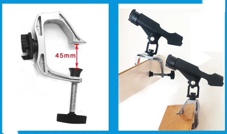 G Clamp mount made from aluminium with steel pressure screw. Clamp-on system that adjusts to a range of rail thicknesses and it is wide enough to slip over the boa rails/gunnel/side(Clamp  Max.opening1-3/4 inch).