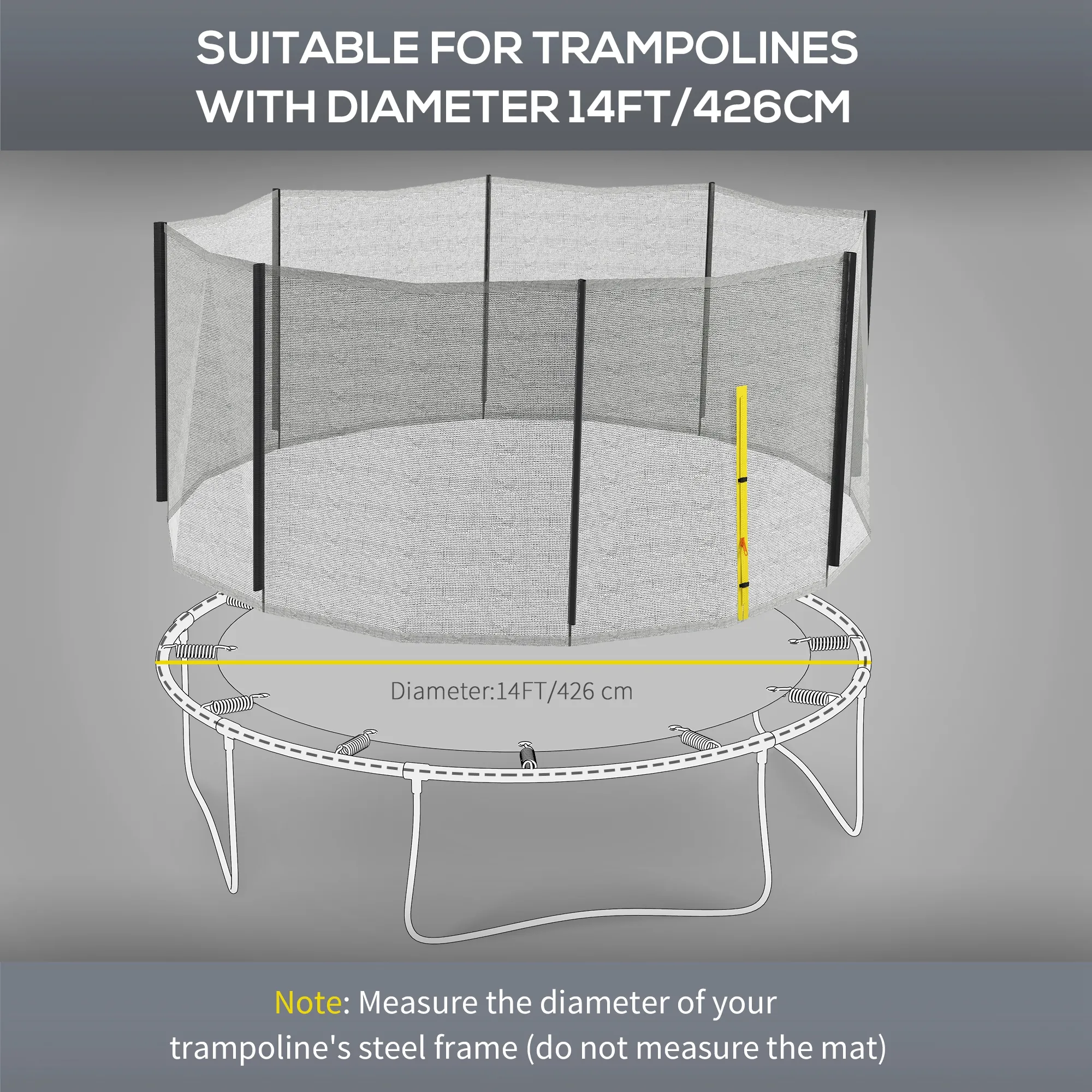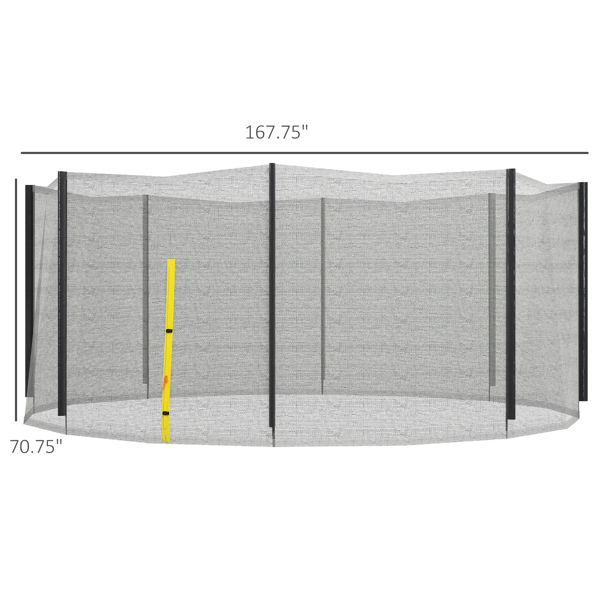Keep your children safe and protected with the Soozier trampoline replacement net. It fits 14ft trampolines with eight straight poles to replace your old or ripped safety net. Our trampoline enclosure is made from tough, weatherproof polyethylene, allowing indoor and outdoor use. The entrance of the net includes a sealable zippered system to maximize protection. An important safety accessory, it creates a trampoline you can trust (enclosure net ONLY, no poles included). Features: - Our trampoline replacement net is a universal fit for 14ft trampolines with eight poles - The 5.9' height keeps children and loved ones from falling sideways off your trampoline - Simple to install with its included hooks - Zipper entry for full protection and ease of use - Enclosure only, no poles included Specification: - Color: Black and Blue - Material: PE - Overall Dimensions: 167.75" Dia x 70.75" H - Pole Cover: 2.75" Dia - Zipper Door: 47.25" W - Suitable for Trampoline Size: 14ft Dia - Item Label: A00-017V01BK Package Includes: -1 x Trampoline Replacement Net; Keep your children safe and protected with the Soozier trampoline replacement net. Features: - Our trampoline replacement net is a universal fit for 14ft trampolines with eight poles - The 5.9' height keeps children and loved ones from falling sideways off your trampoline - Simple to install with its included hooks - Zipper entry for full protection and ease of use - Enclosure only, no poles included Specification: - Color: Black and Yellow - Material: PE - Overall Dimensions: 167.75" Dia x 70.75" H - Pole Cover: 2.75" Dia - Zipper Door: 47.25" W - Suitable for Trampoline Size: 14ft Dia - Item Label: A00-017V00BK Package Includes: -1 x Trampoline Replacement Net;.