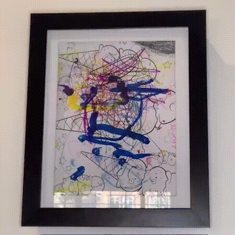 Perfect for your child's cherished artwork;Â The frame opens like a book and has elastic straps on the inside to allow for