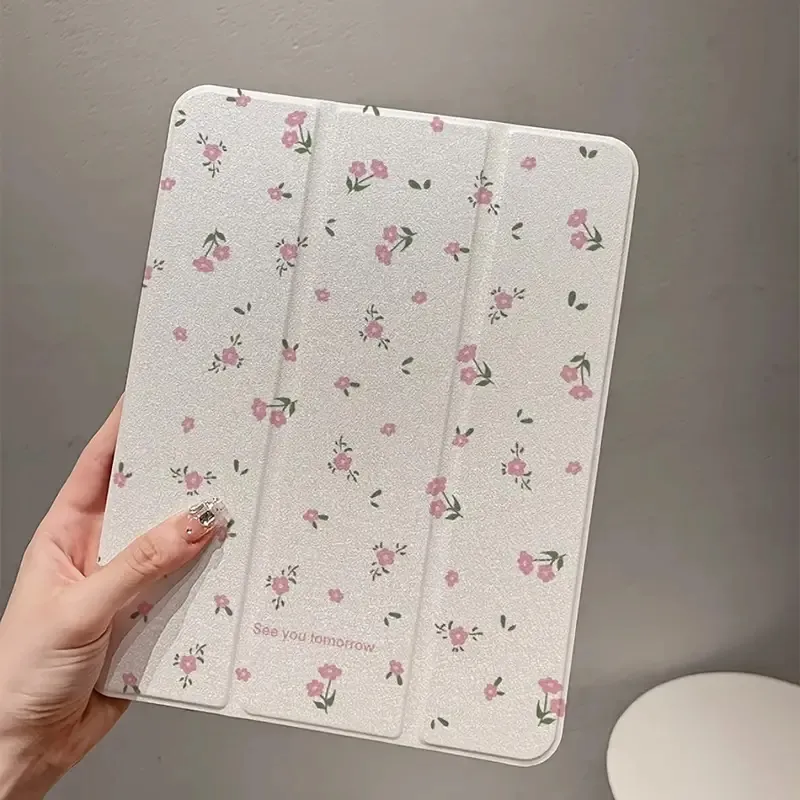 Transparent Floral Tri-fold Tablet Protective Case – Stylish and Durable Protection for Your Tablet
