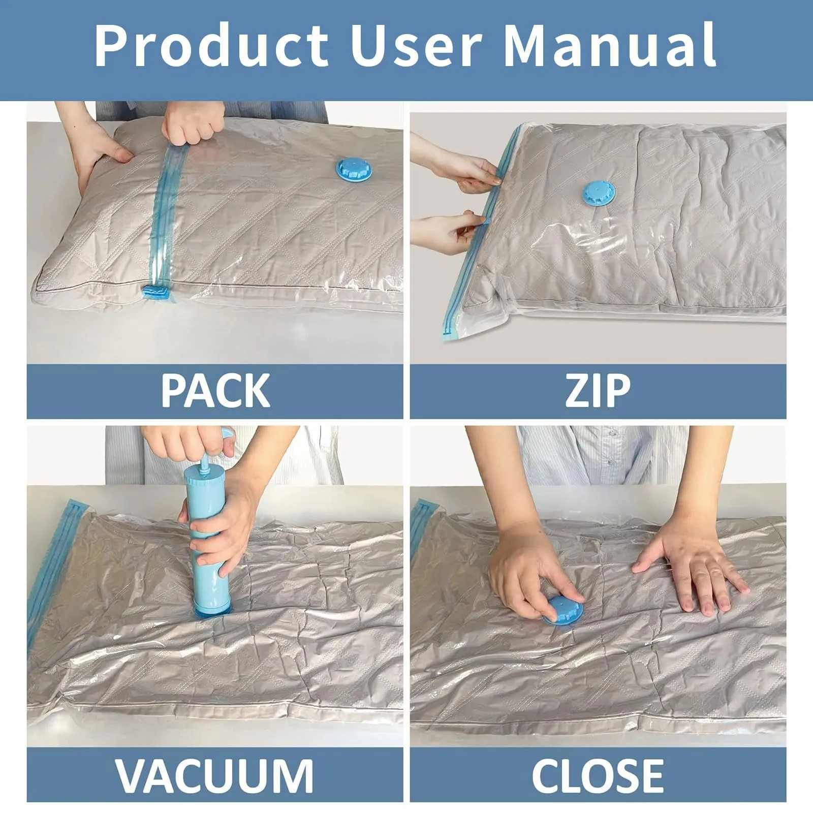 Each bag features a double-zip seal and a secure valve to ensure an airtight and waterproof closure, keeping your items fresh and protected from dust, moisture, and odors.