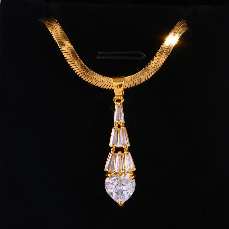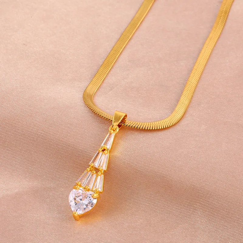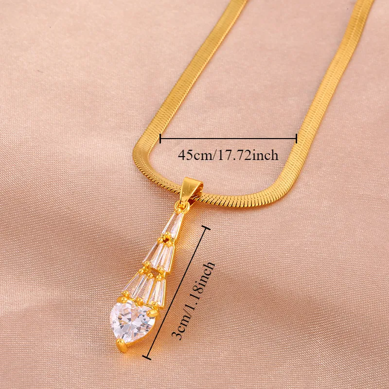 Trapezoidal Crystal Water Drop Pendant Necklace