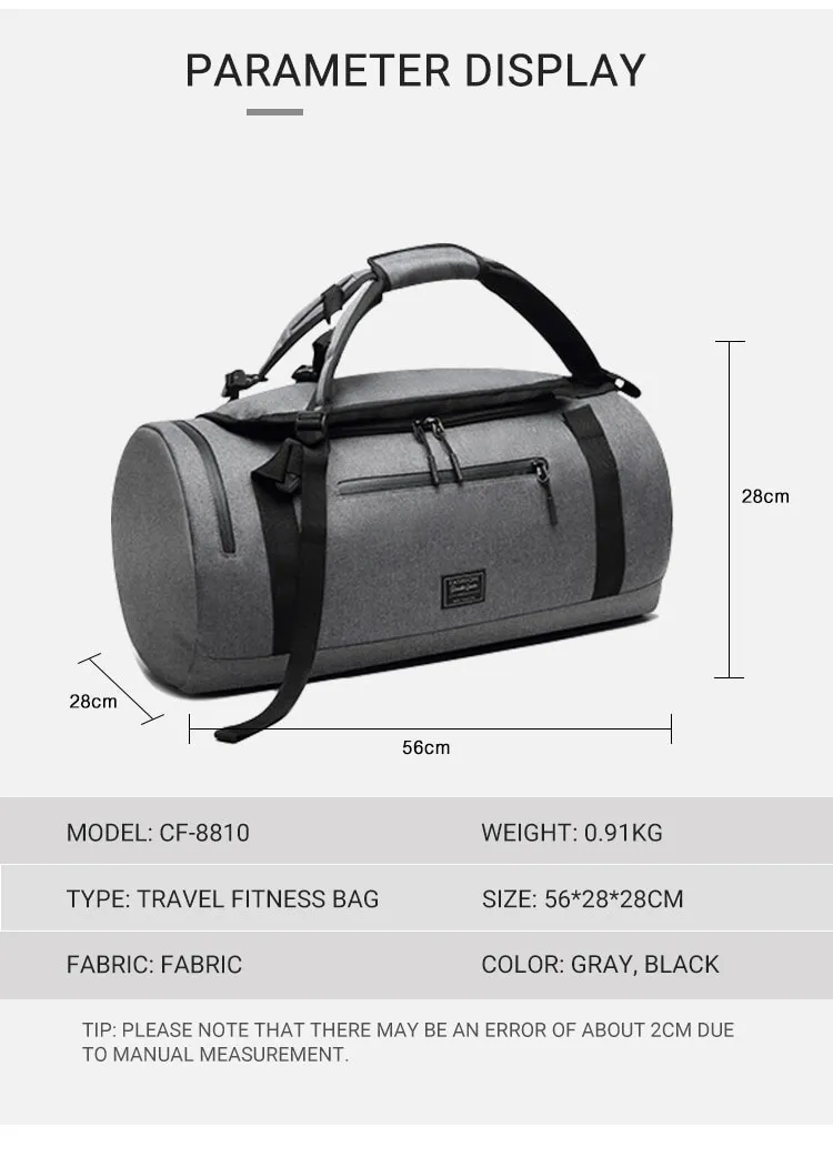 Whether you’re heading to the gym, going on a hiking trip, or traveling for business, the Travel Handbag Backpack Fitness Bag