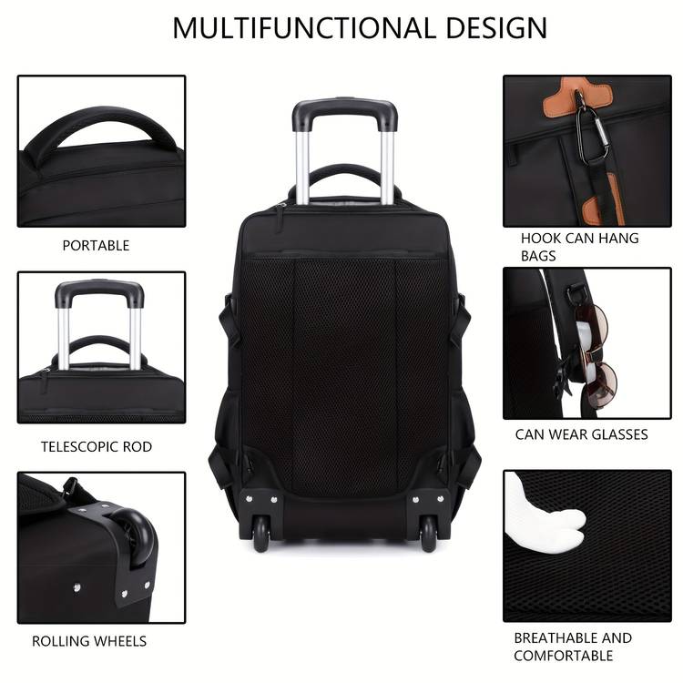 The Travel Rolling Backpack combines the convenience of a rolling suitcase with the practicality of a traditional backpack. Whether you’re a professional looking for a reliable laptop bag or a student who needs a durable and spacious backpack for school, this rolling backpack is the perfect solution. Its sturdy design, spacious compartments, and easy-to-carry wheels make it the ultimate choice for those who value convenience and comfort on the go.