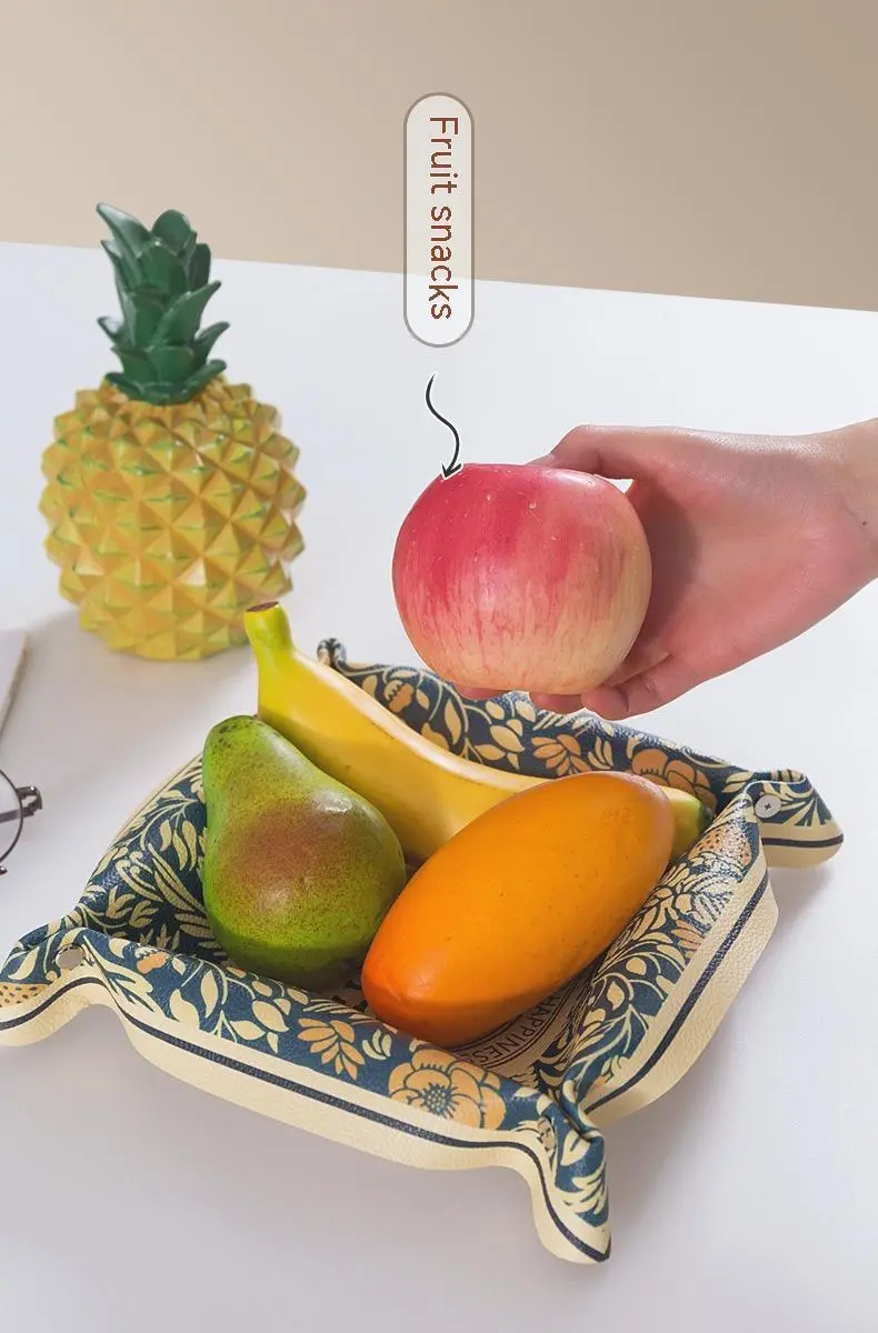 The PU Leather Tray Nut Snap Sundries Storage Box is perfect for organizing a variety of items. Whether you're storing fruit snacks in the kitchen, organizing office supplies on your desk, or keeping your personal items tidy in the bathroom, this tray provides a versatile solution to meet your storage needs. Its spacious design allows you to store everything from small accessories to household essentials, making it a must-have item for any home.