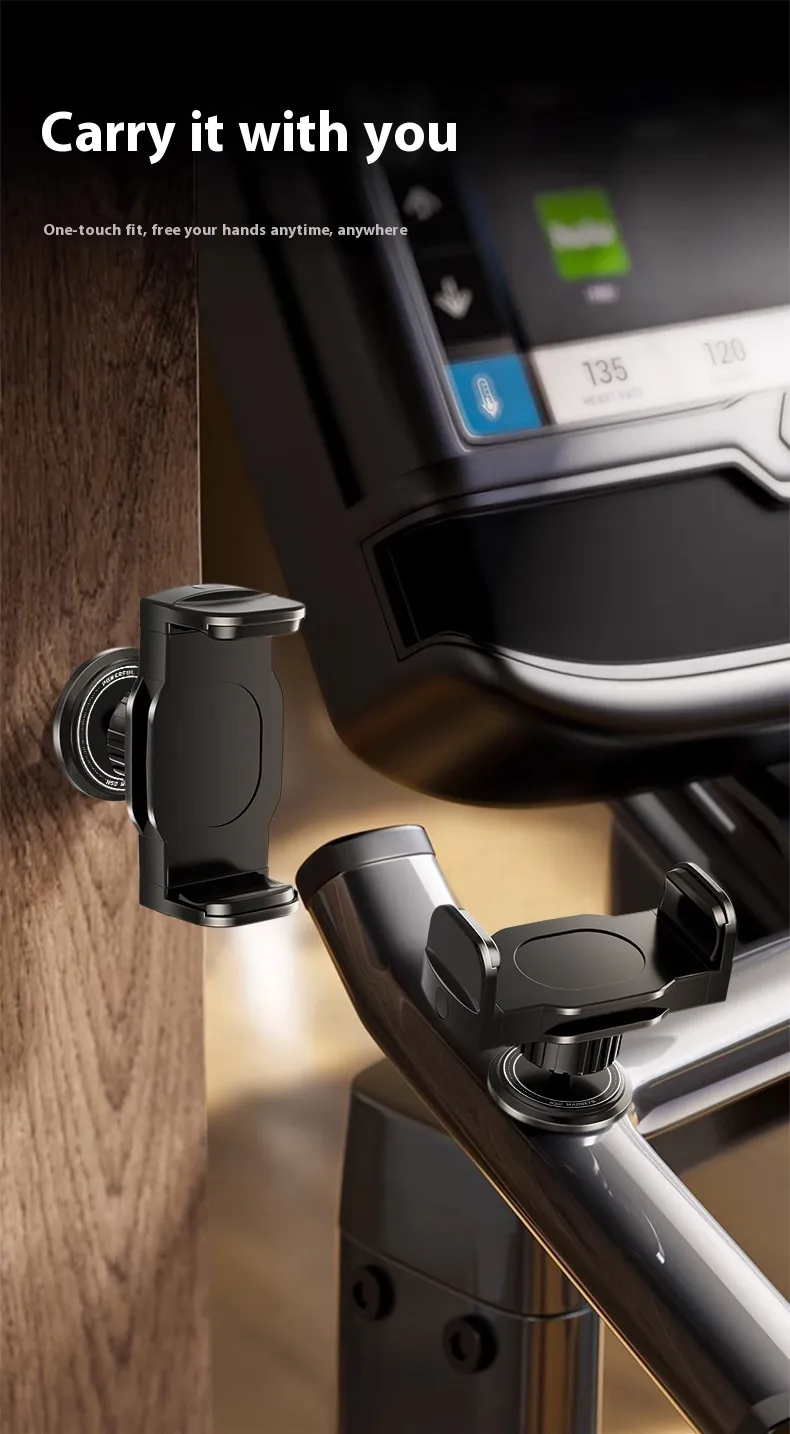 Featuring strong magnetic suction and a flexible hanging design, this bracket securely holds your phone on treadmills, walls, or other surfaces. Its compact and lightweight construction makes it portable for both indoor and outdoor workouts. With adjustable angles, you can easily view your screen for music, workout apps, or video calls while staying active.