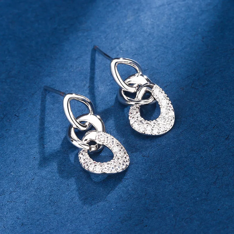 Trendy Special-interest Design Diamond-embedded Three-chain Temperament Auricular Needle