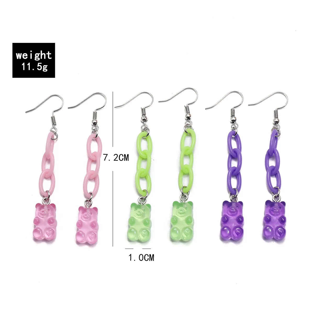 Tricolor Resin Bear Pendant Tassel Earrings