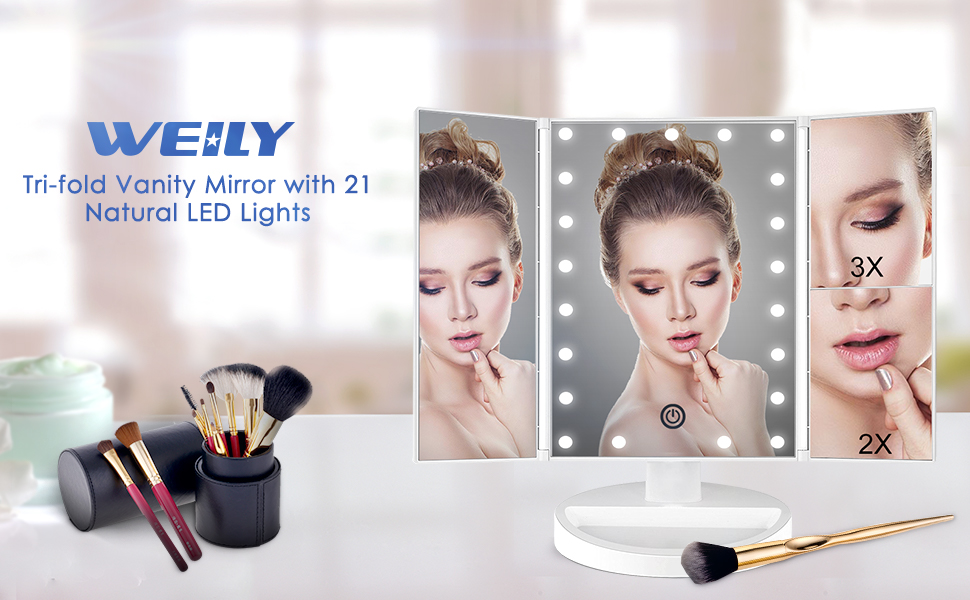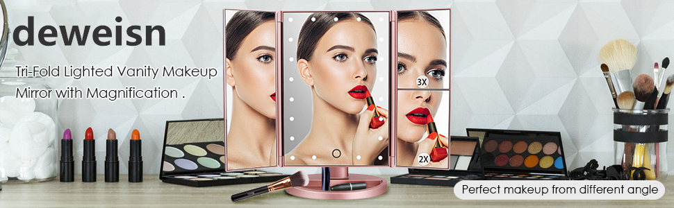 - 180 degree rotation & Tri-fold: The light-emitting makeup mirror on the worktable can be easily adjusted, and the viewing angle can be fixed perfectly and comfortably. Tri-Fold Design :Easy for take away and daily maintenance, can open or fold it like a book when not using to protect it away from the dust or other scratches.The tri-fold and detachable design allows you to take it with you and enjoy delicate makeup anytime, anywhere