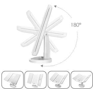- 180 degree rotation & Tri-fold: The light-emitting makeup mirror on the worktable can be easily adjusted, and the viewing angle can be fixed perfectly and comfortably. Tri-Fold Design :Easy for take away and daily maintenance, can open or fold it like a book when not using to protect it away from the dust or other scratches.The tri-fold and detachable design allows you to take it with you and enjoy delicate makeup anytime, anywhere