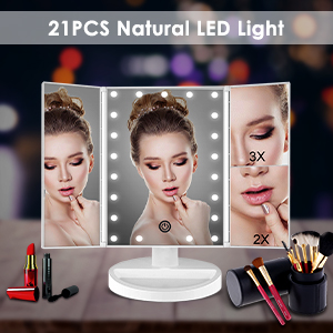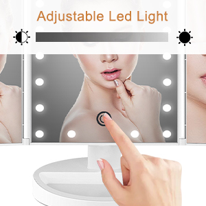 - Built in 21pcs LED lights, which is intelligent to adjust brightness by touch sensor switch, long press to dimmer the light.You can make up you in poorly light, without disturbing others.