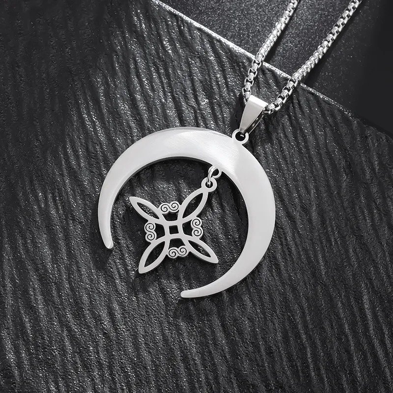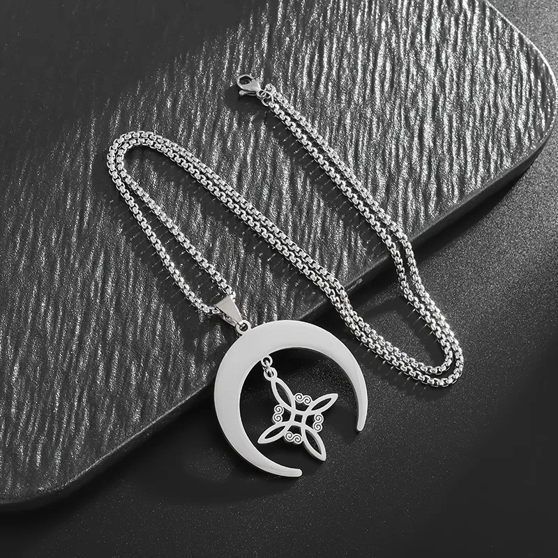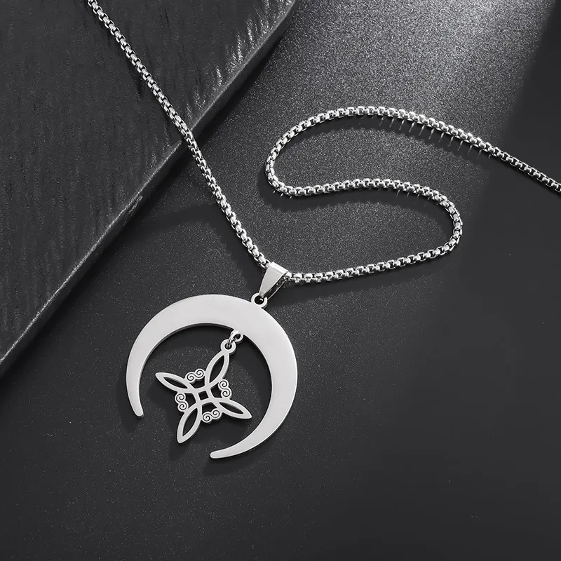 Color: Moon Celtic knot necklace-steel color