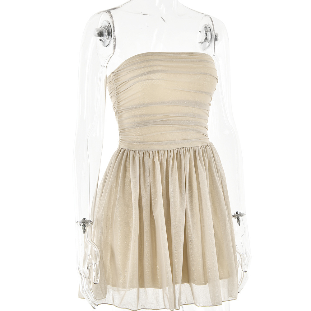 Embrace summer elegance with our Tube Top Lace Dress, featuring a chic back bow-knot and intricate mesh stitching. This dress combines