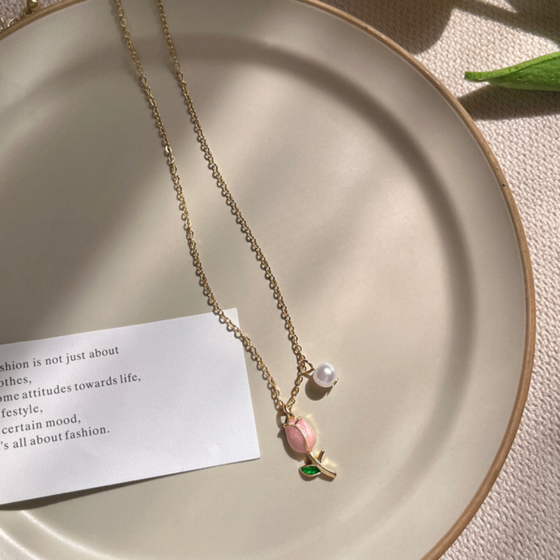 Tulip Pearl Necklace Clavicle Chain
