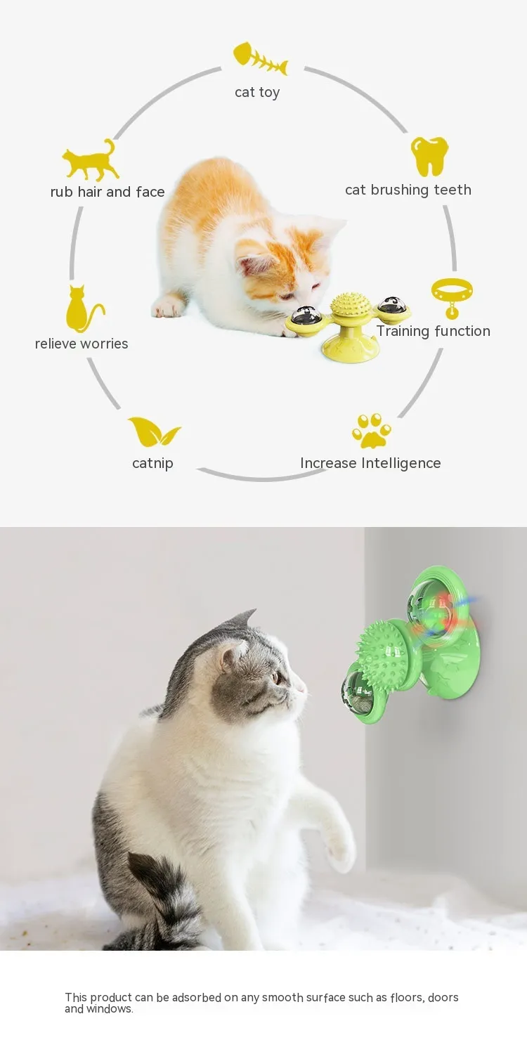 Durable and Cat-Safe Materials: Made from high-quality, non-toxic materials, the Turning Windmill Cat Teaser Toy