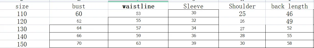 Size:110,120,130,140,150