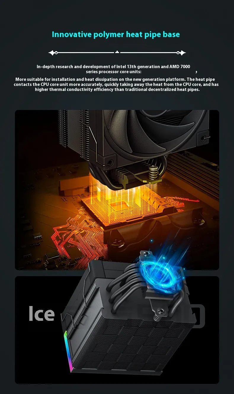 Crafted from premium materials, this heat sink is designed to be durable and long-lasting, ensuring efficient cooling performance for years to come. The high-quality fans run quietly, offering effective cooling without the distracting noise found in some other cooling systems. This makes it ideal for home office setups, gaming PCs, and workstations, where peace and focus are essential.