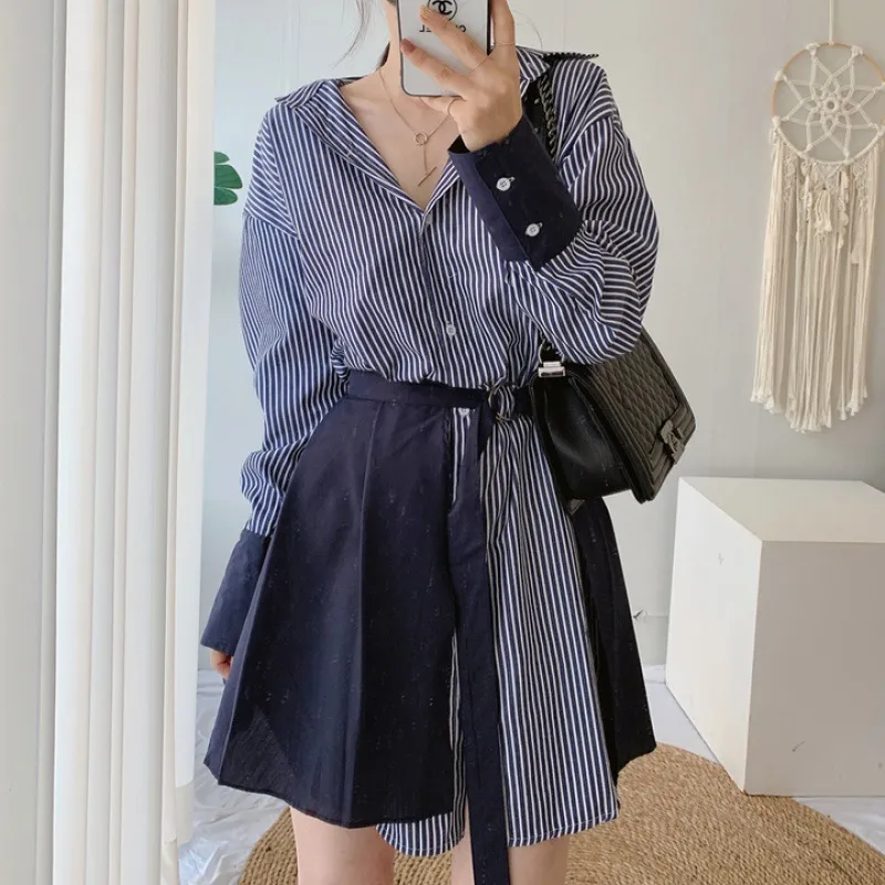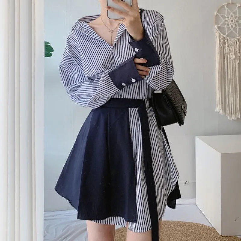 Perfect for Summer: With its breathable fabrics and stylish design, the two-piece striped dress is ideal for summer