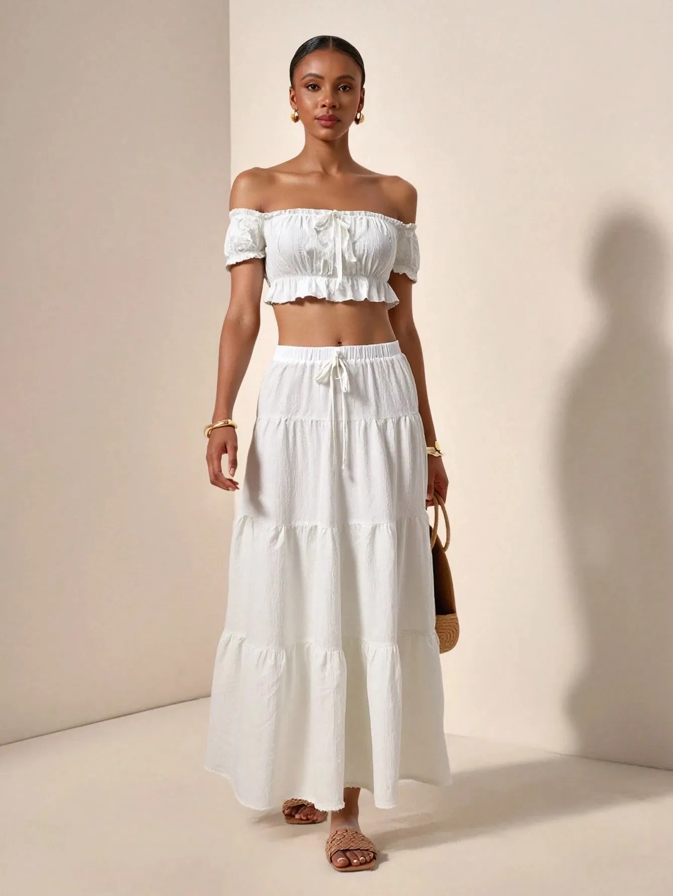 The Two-Piece Summer Set offers plenty of versatility for mixing and matching with other pieces in your wardrobe. The top can be paired with jeans, skirts, or shorts for a more casual look, or dressed up with a blazer for a more polished appearance. The matching bottom can be worn with other tops for a fresh look, allowing you to create multiple outfits from one set. This flexibility makes the set a great investment, as it allows for countless styling possibilities.