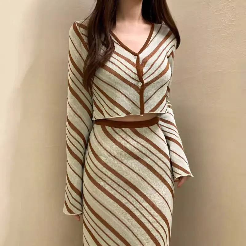 Two Short Knitwear High Waist Skirt Suit Women