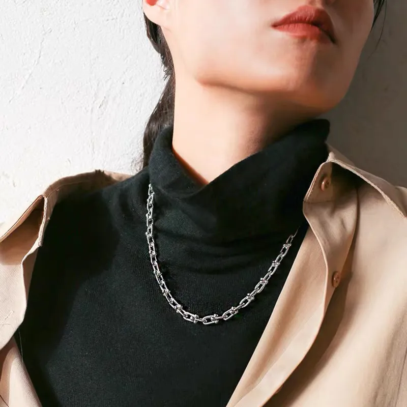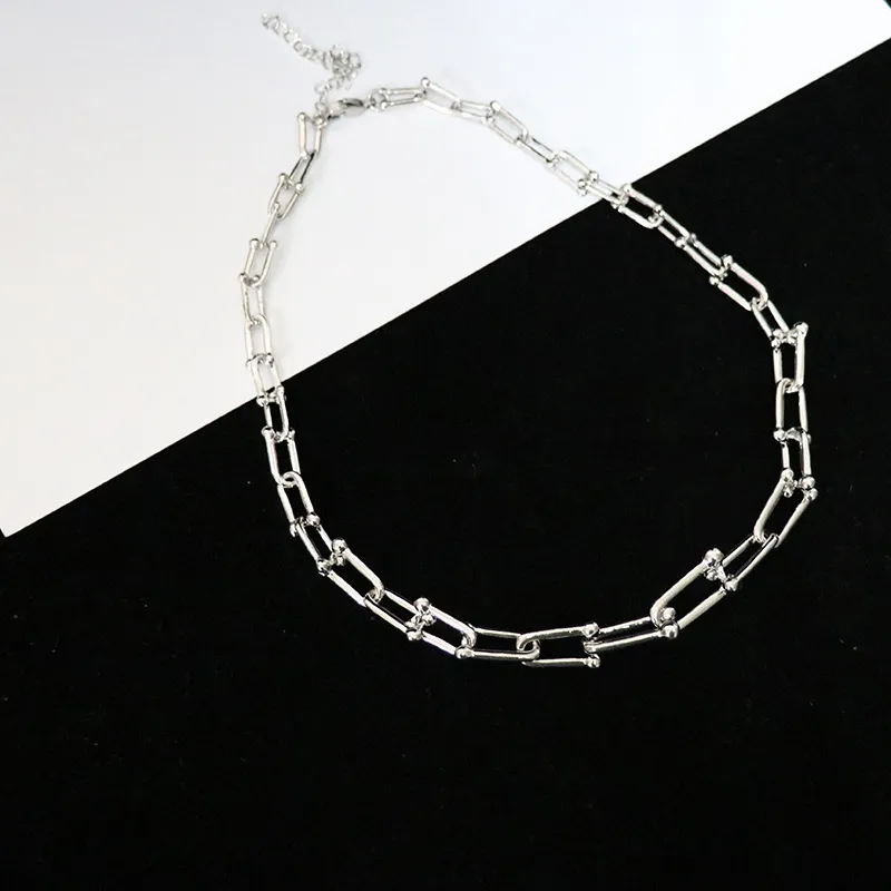 U-shaped thick chain stitching necklace