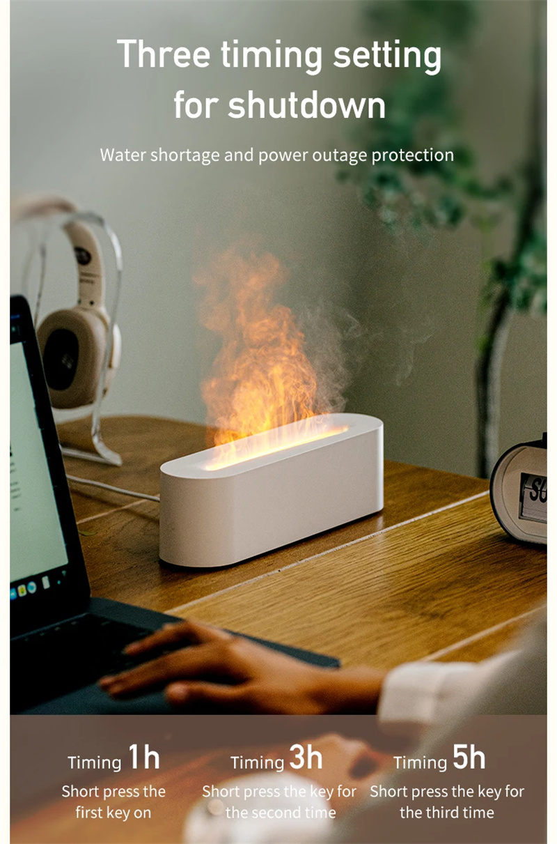 Whether you're looking to de-stress after a long day, create a serene workspace, or add a touch of elegance to your home décor, our Flame Aroma Diffuser meets all your needs. It operates quietly, making it suitable for use during sleep or meditation, and it's an excellent way to enhance the air quality and ambiance of any indoor environment.