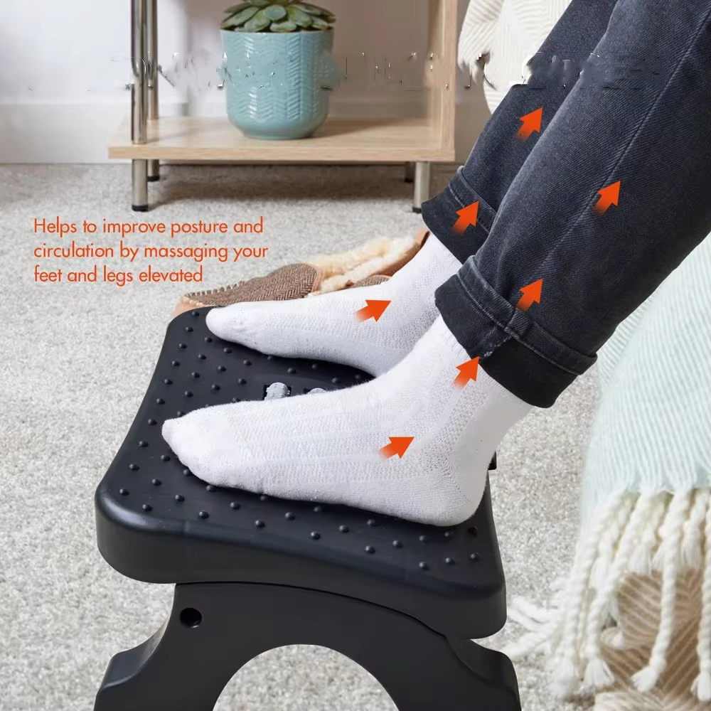 The ergonomic design promotes better posture and reduces leg fatigue, ensuring comfort throughout the day. Whether you're working from home or in the office, this footrest is a practical solution for relieving discomfort and enhancing your workspace setup.