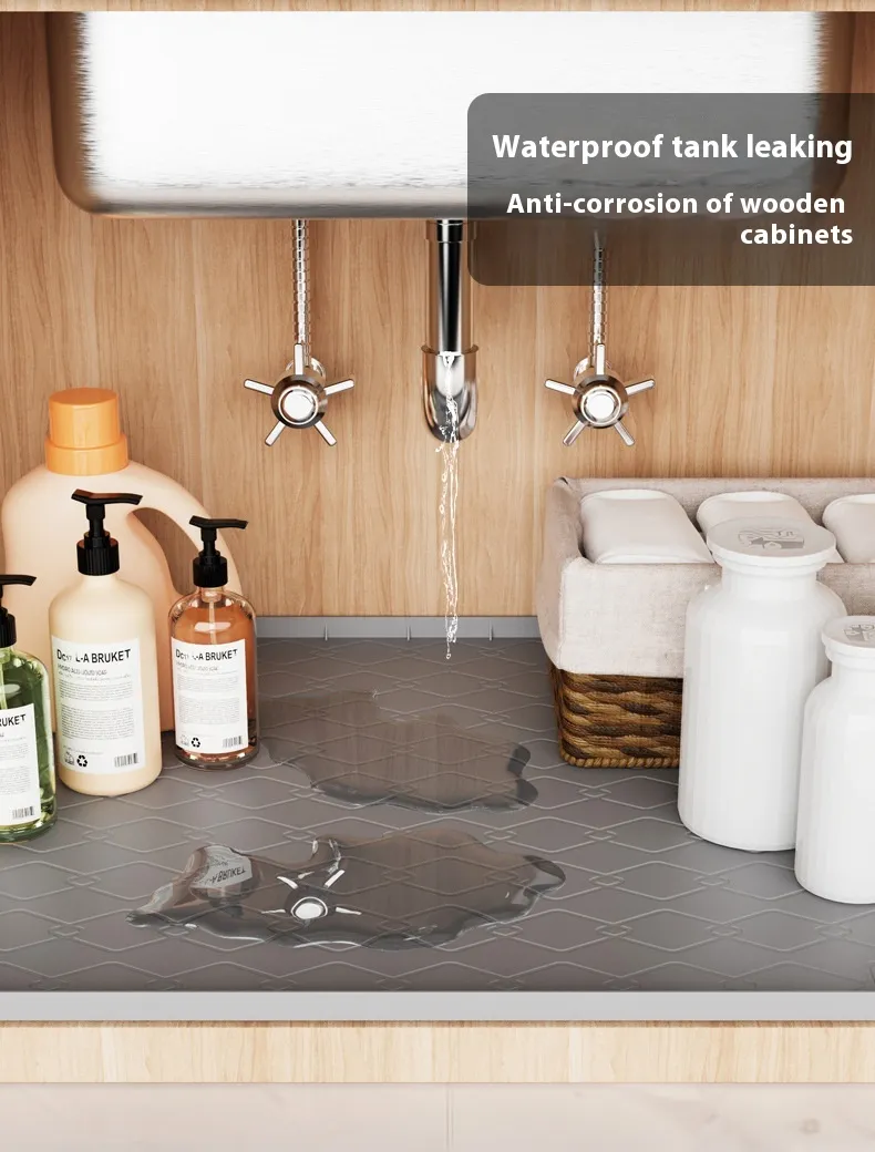The Under Sink Mat is a must-have kitchen and bathroom accessory that provides essential protection against water damage while keeping your sink area organized and clean. With its durable, easy-to-clean surface, non-slip design, and eco-friendly materials, this mat offers both function and style. Whether you're preventing spills in the kitchen or managing leaks in the bathroom, the Under Sink Mat ensures that your space remains dry, tidy, and protected.